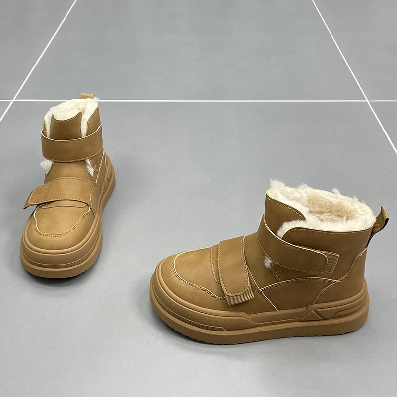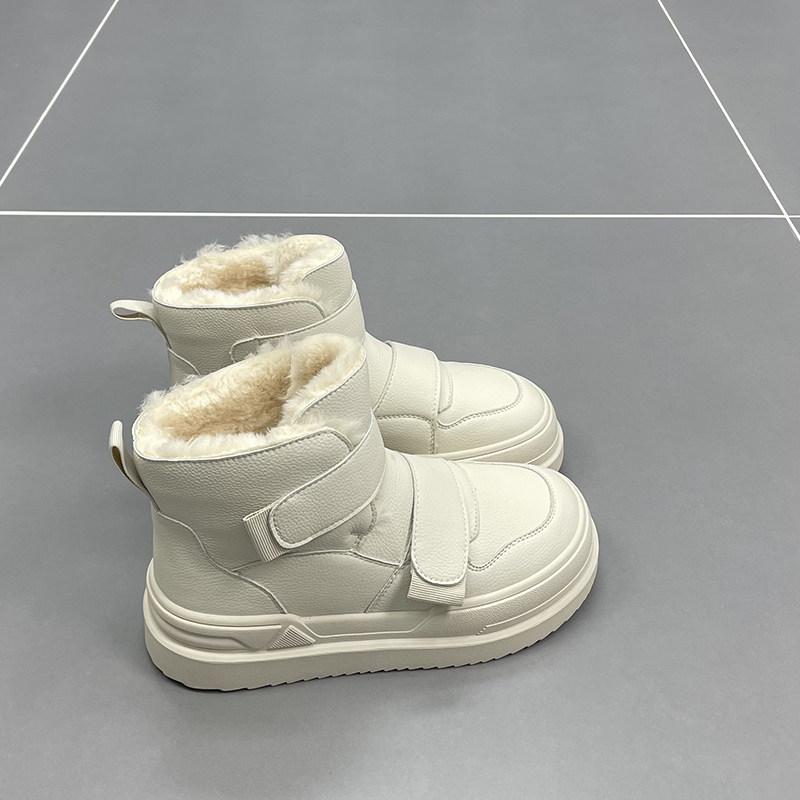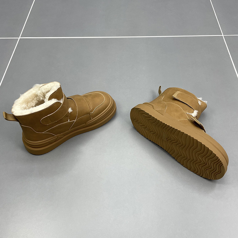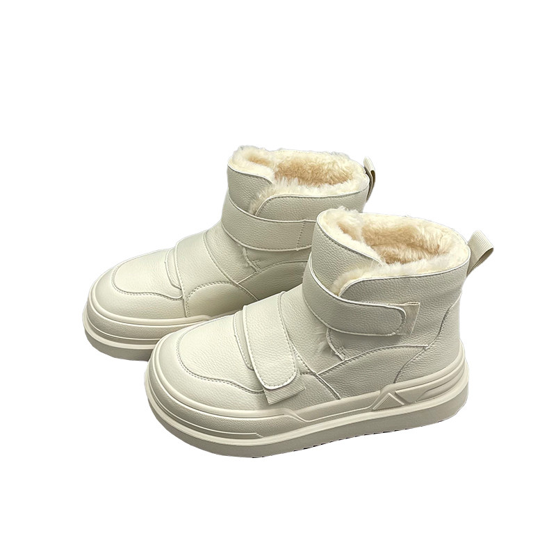 速利玛真皮羊毛雪地靴女2025冬季新款厚底魔术贴加厚保暖短筒棉靴
