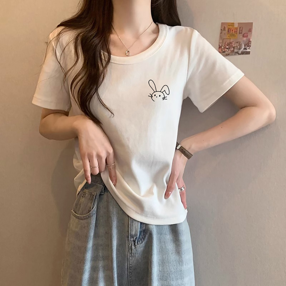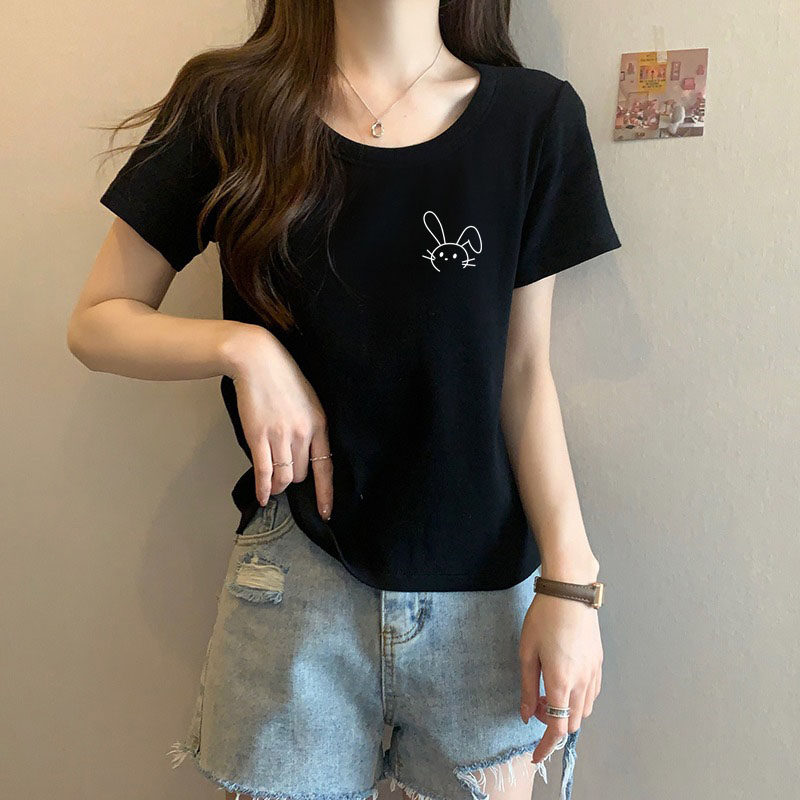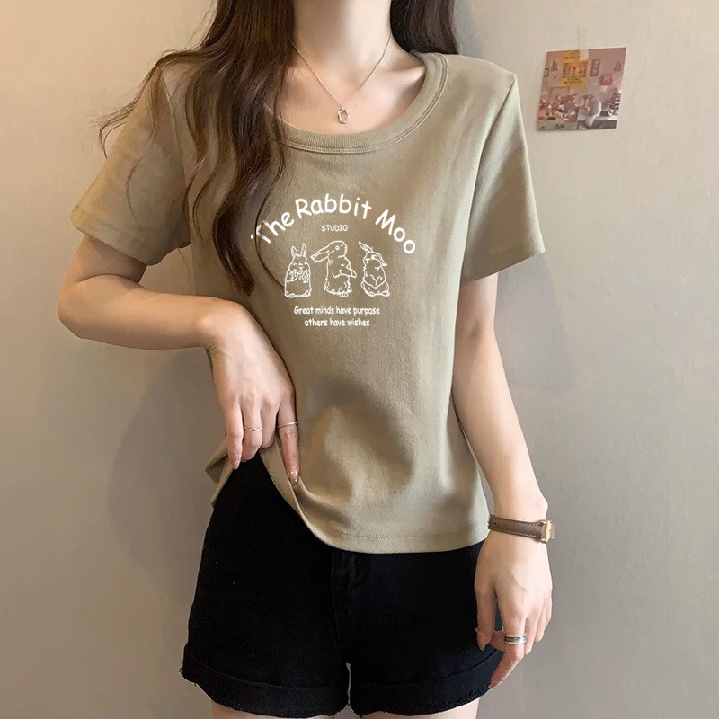 爆款大领口遮肉显瘦胖m短袖t恤女装薄款夏季宽松百搭纯棉体恤上衣