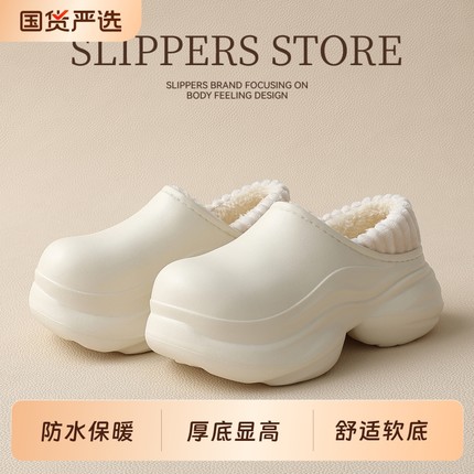 厚底防水棉拖鞋女款冬季2025新款室内居家外穿包跟保暖毛绒棉鞋