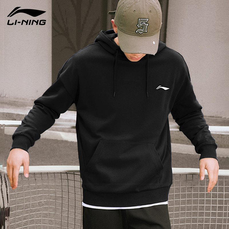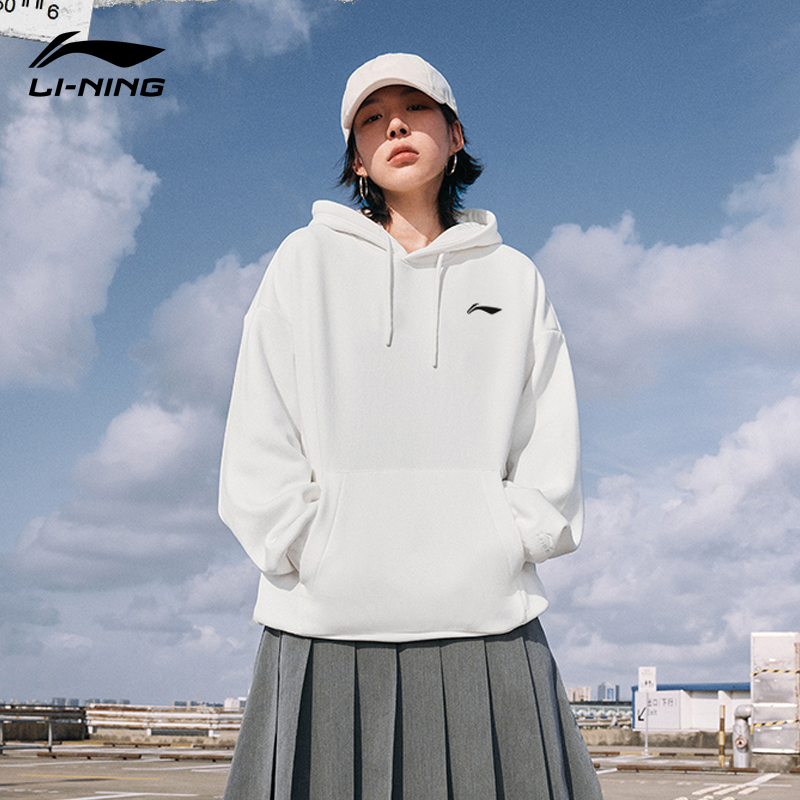 李宁加绒卫衣男士春秋新款复古宽松连帽上衣情侣装帽衫女士运动服