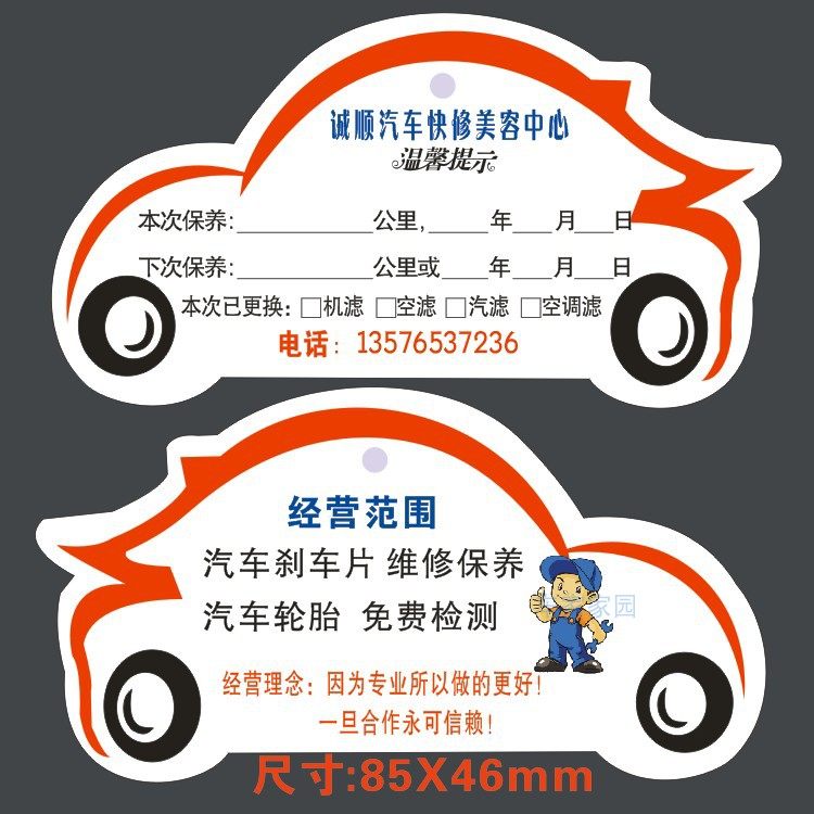 汽车保养提示吊牌里程静电机油贴维修保养提示吊卡温馨提示纸牌