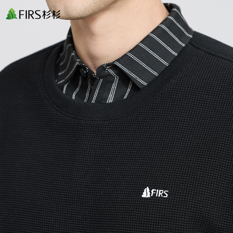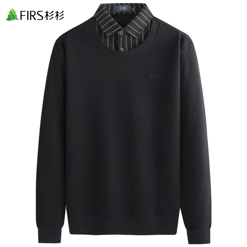 【假两件】杉杉肌理感卫衣男2025春季新款重磅翻领商务休闲上衣