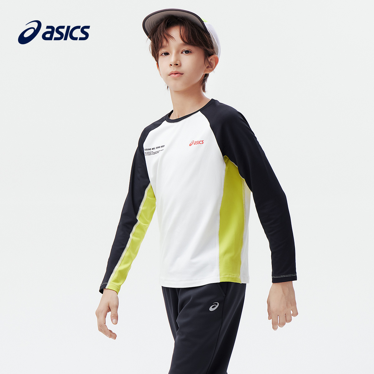 Asics/亚瑟士童装2025春秋新款运动长袖T恤吸湿速干圆领儿童外套