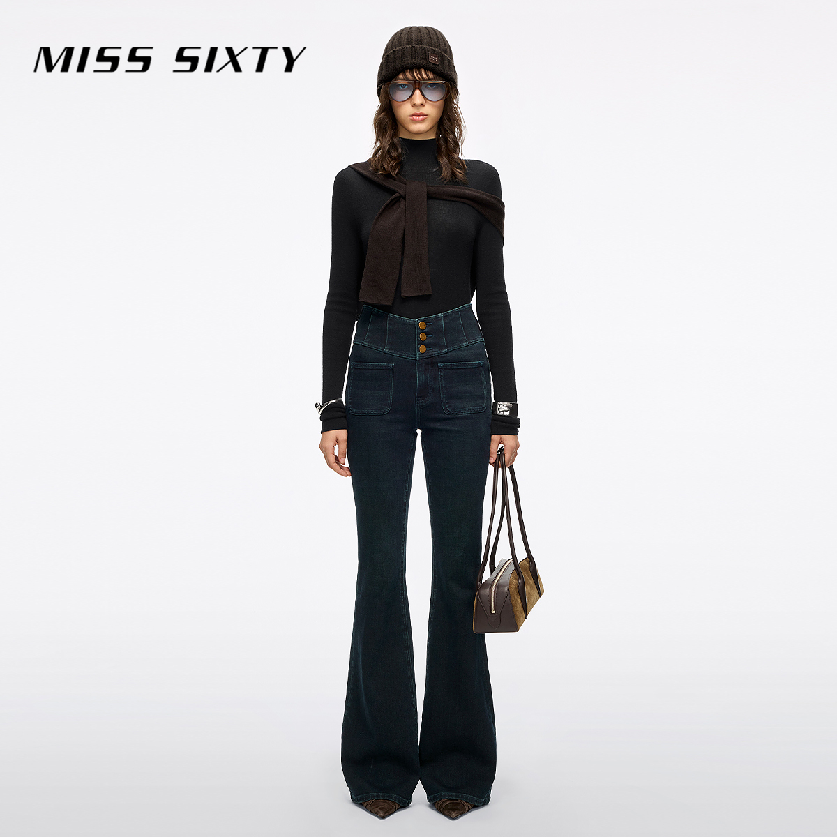 【进口牛仔面料】Miss Sixty25冬新款牛仔裤女修身喇叭裤超模裤