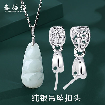 S925银吊坠扣头斜孔直孔佛公玉石翡翠玉坠扣DIY配件扣子吊坠扣头
