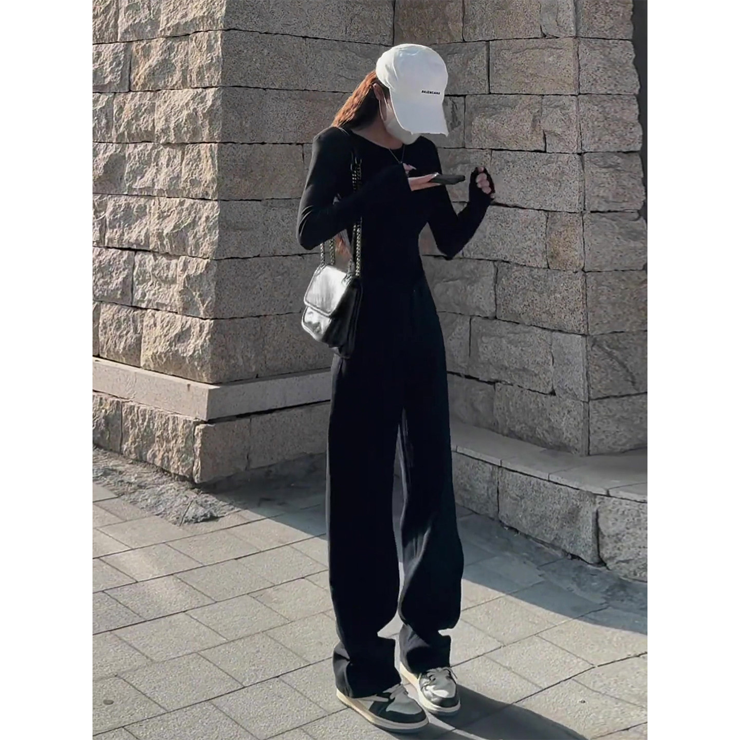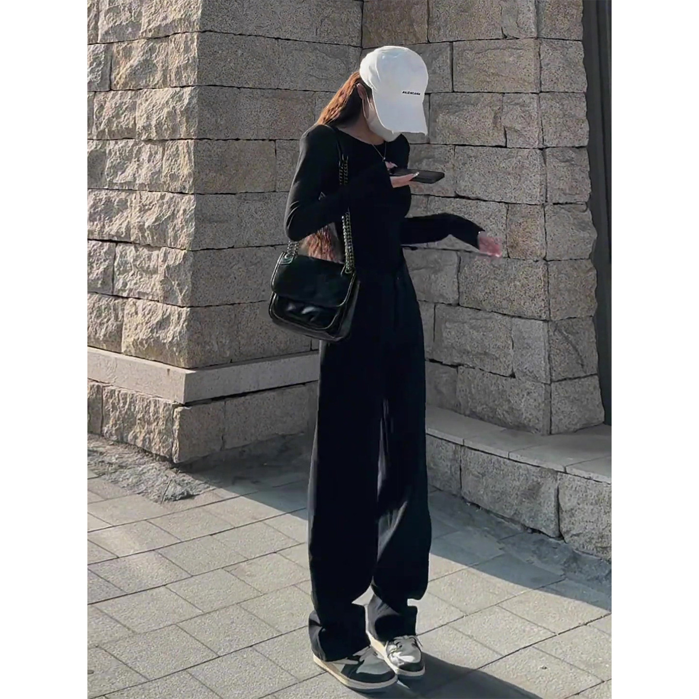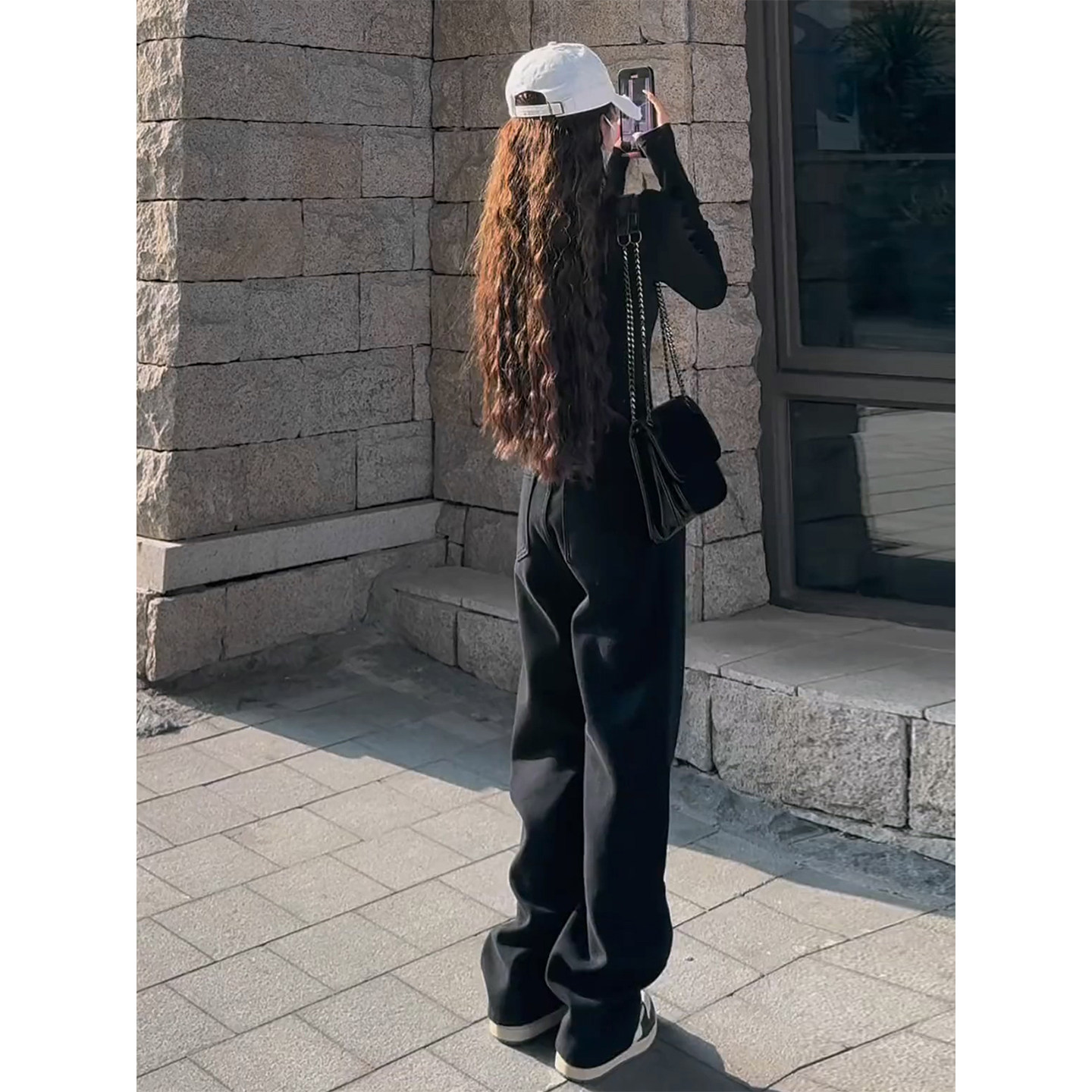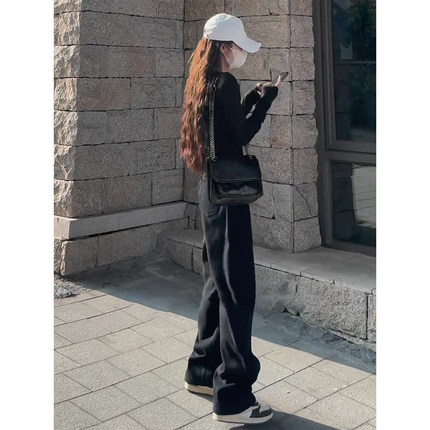 黑色窄版阔腿牛仔裤女秋季