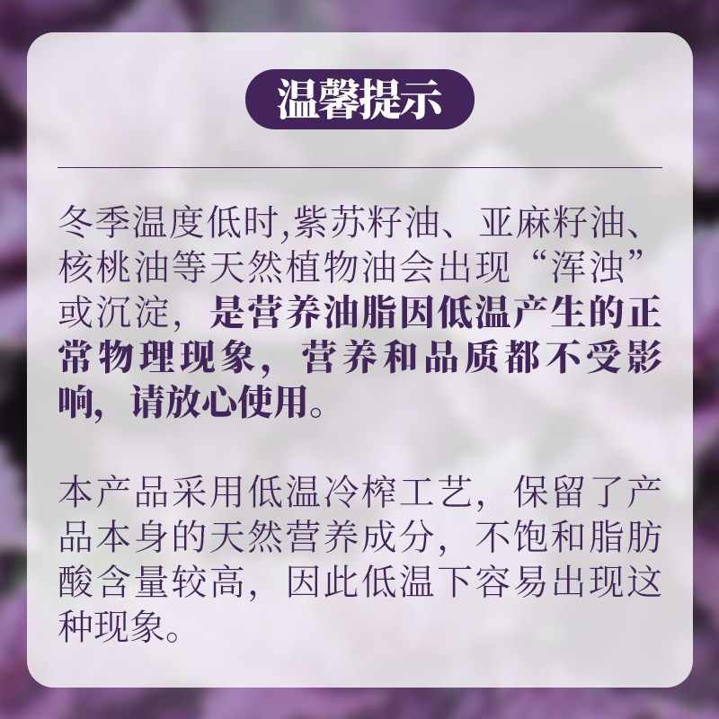 硃碌科有机紫苏籽油一级冷榨口服直饮压榨食用油250ml官方旗舰店