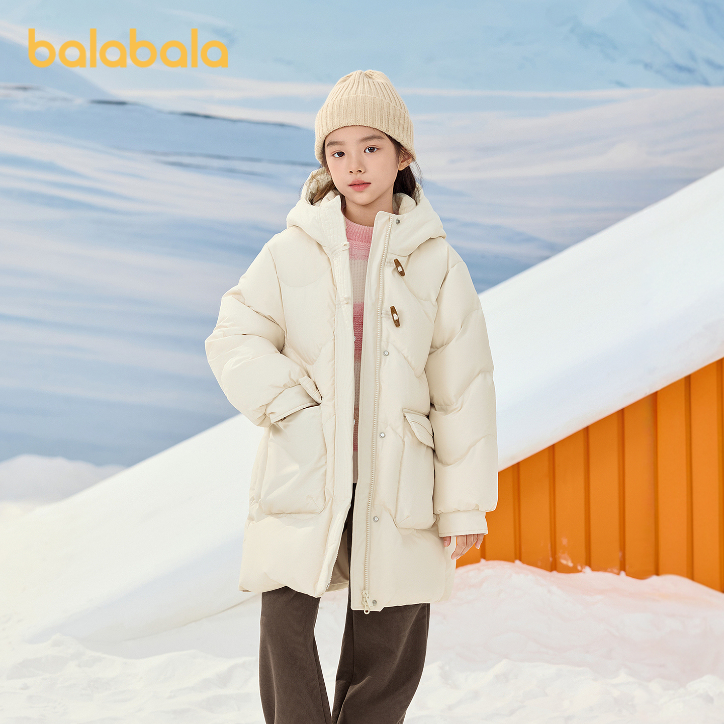 巴拉巴拉童装儿童羽绒服女童冬季长款连帽加厚保暖外套三防户外潮