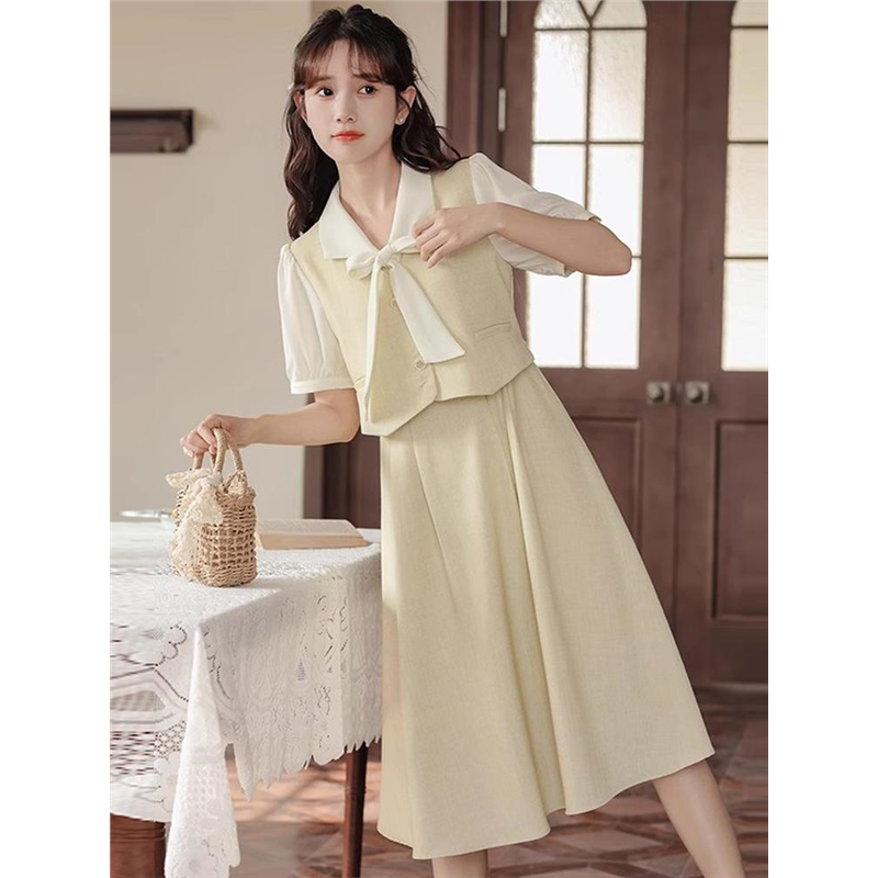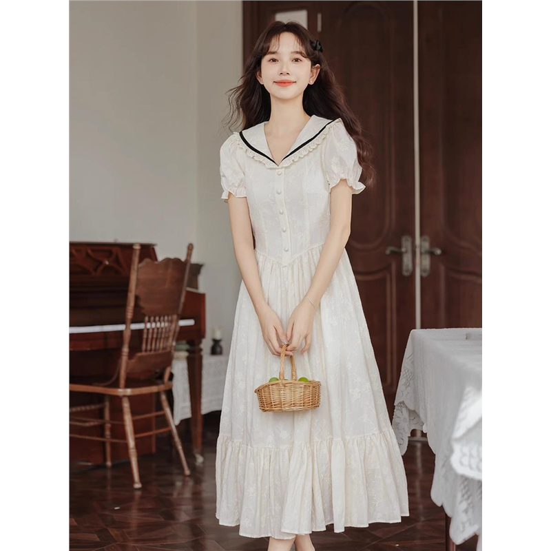 文艺方领蝴蝶结连衣裙少女夏装2025新款初高中学生学院风白色长裙