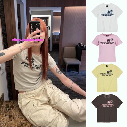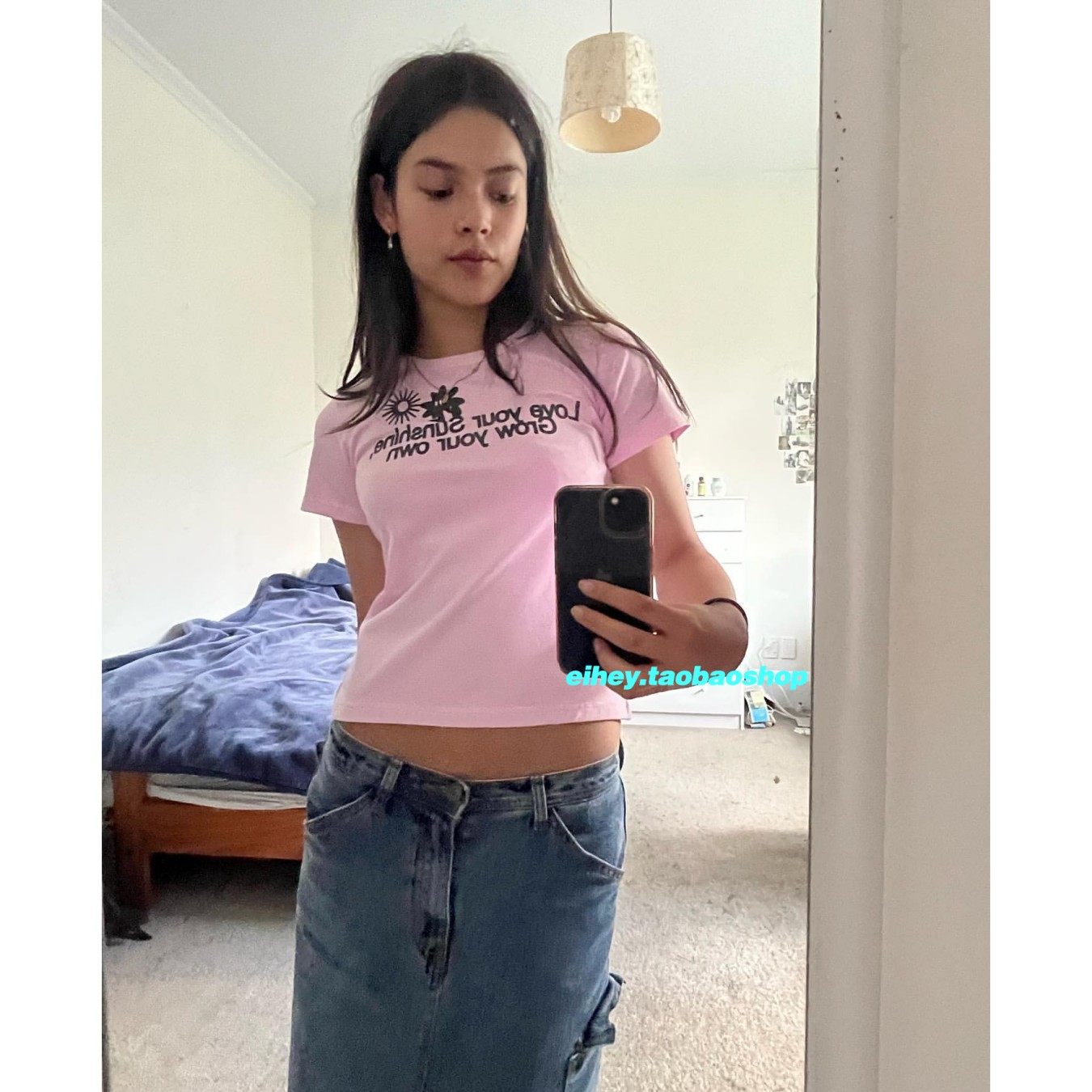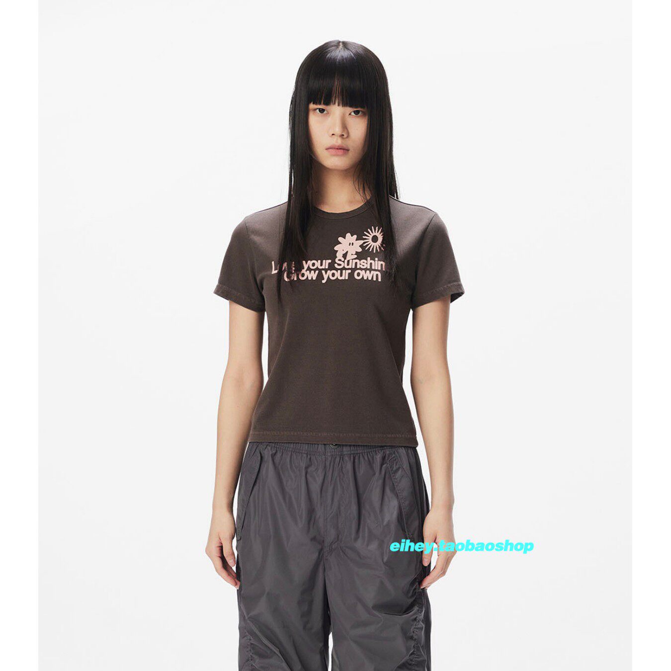 eihey诶嘿夏季字母印花图案圆领简约百搭修身短款短袖T恤上衣女