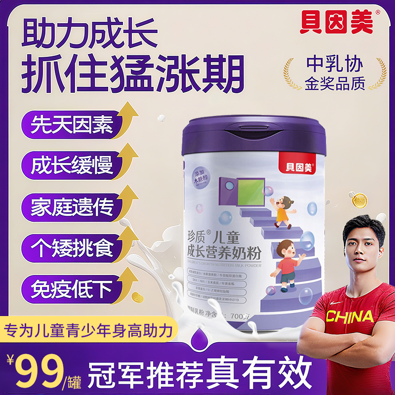 贝因美珍质儿童成长奶粉CBP助力高个子DHA助力青少年学生记忆力