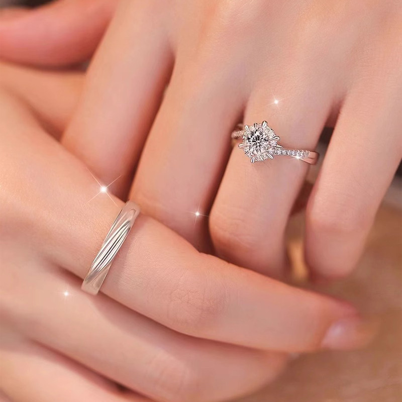 正品莫桑石钻戒女情侣对戒纯银男一对1克拉仿真钻求结婚戒指礼物