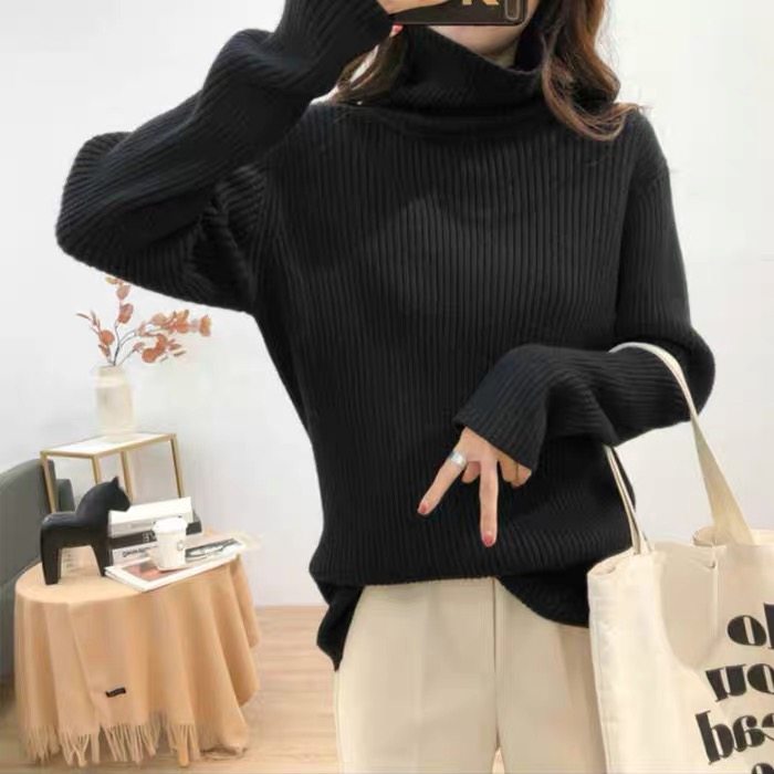 冬季加厚高领毛衣女套头慵懒风2025新款时尚洋气宽松坑条打底衫女