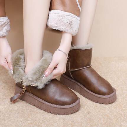 2025新款厚底皮毛一体防水雪地靴