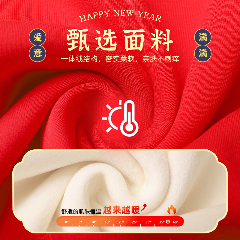 史努比儿童红色加绒卫衣男童2026马年本命年衣服秋冬新年喜庆衣服