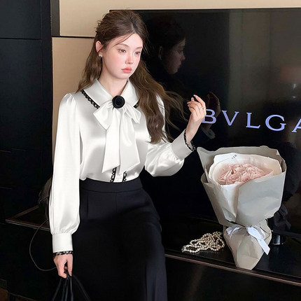 2026春季新款无拉链法式娃娃领衬衫气质上衣长裤套装两件套D4670