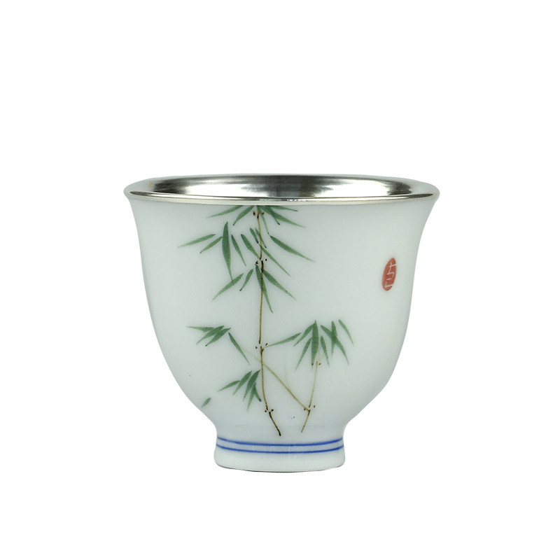 纯银时代手绘君子纹瓷包银品茗杯