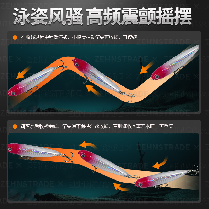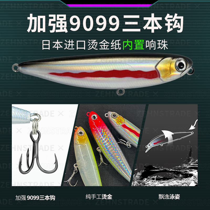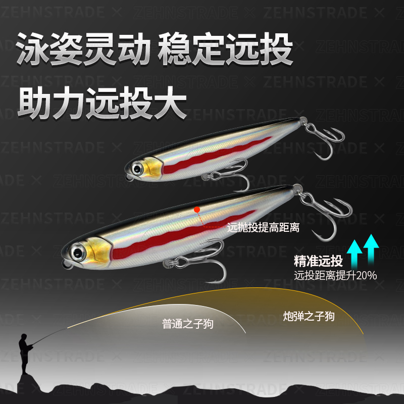 远投炮弹之字狗路亚饵浮水铅笔水面系钓翘嘴鲈鱼军鱼假饵硬饵双钩