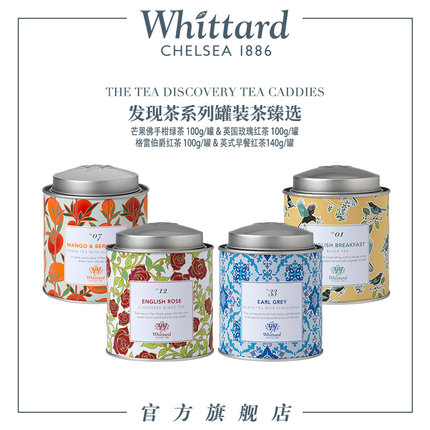 Whittard发现系列红茶绿茶玫瑰伯爵早餐100g罐装红茶礼物英国进口
