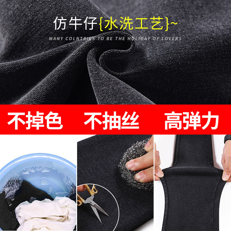 烟灰色牛仔打底裤女外穿秋冬加绒高腰显瘦弹力紧身九分小脚铅笔裤