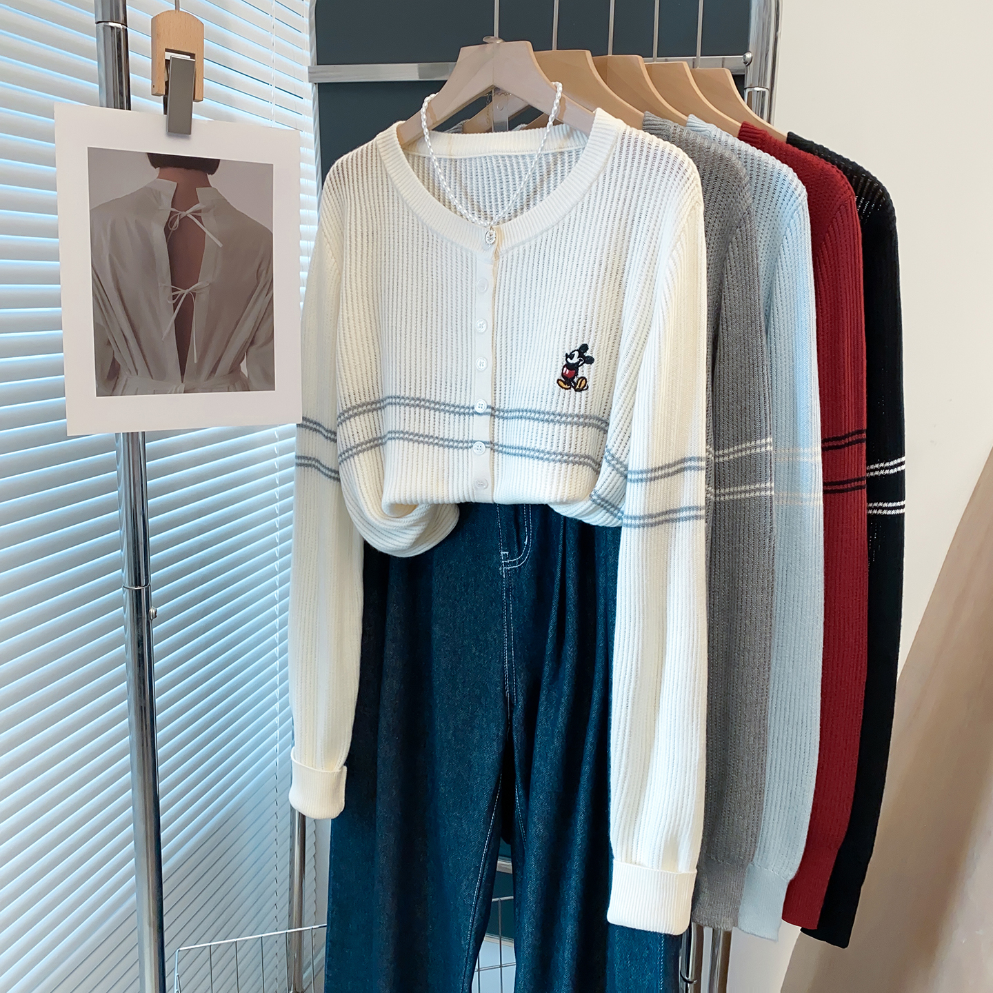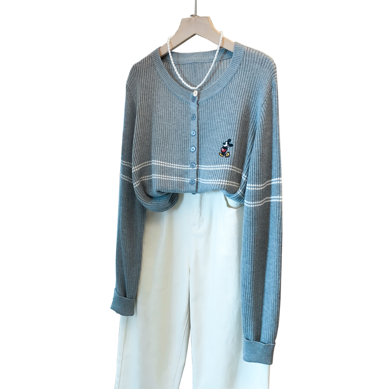 圆领绣花镂空毛衣外套女2025秋装新款宽松慵懒风上衣洋气针织开衫