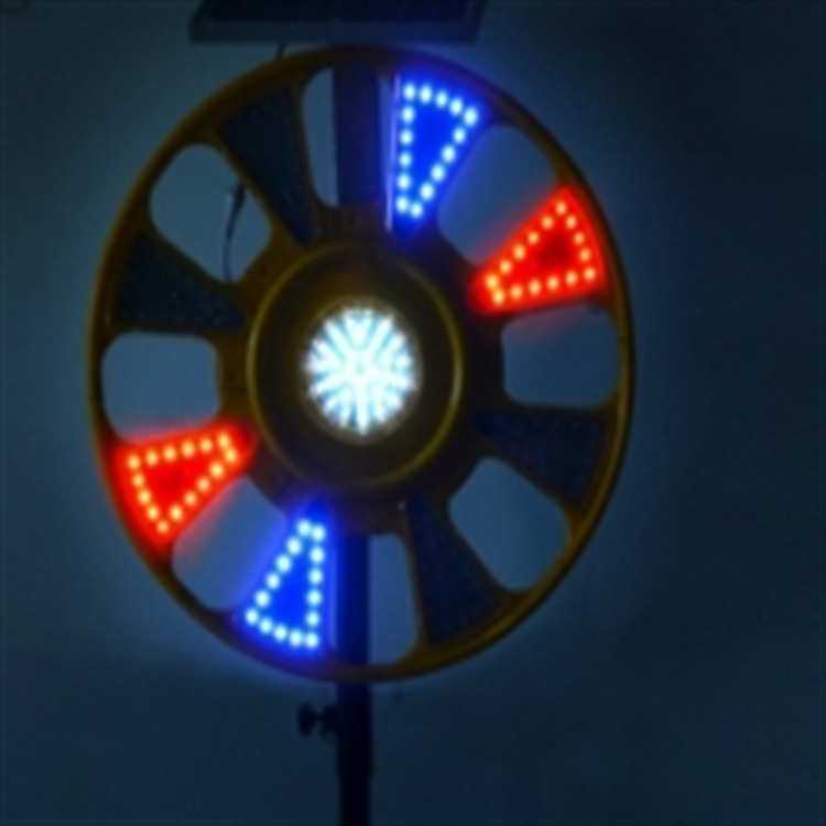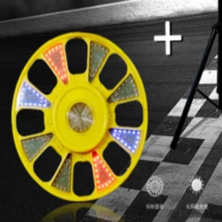 太阳能回转灯LED红蓝警示灯圆形葵花爆闪灯路障灯施工频闪回旋灯