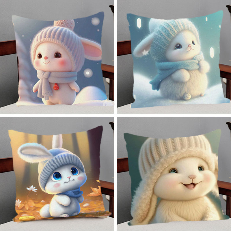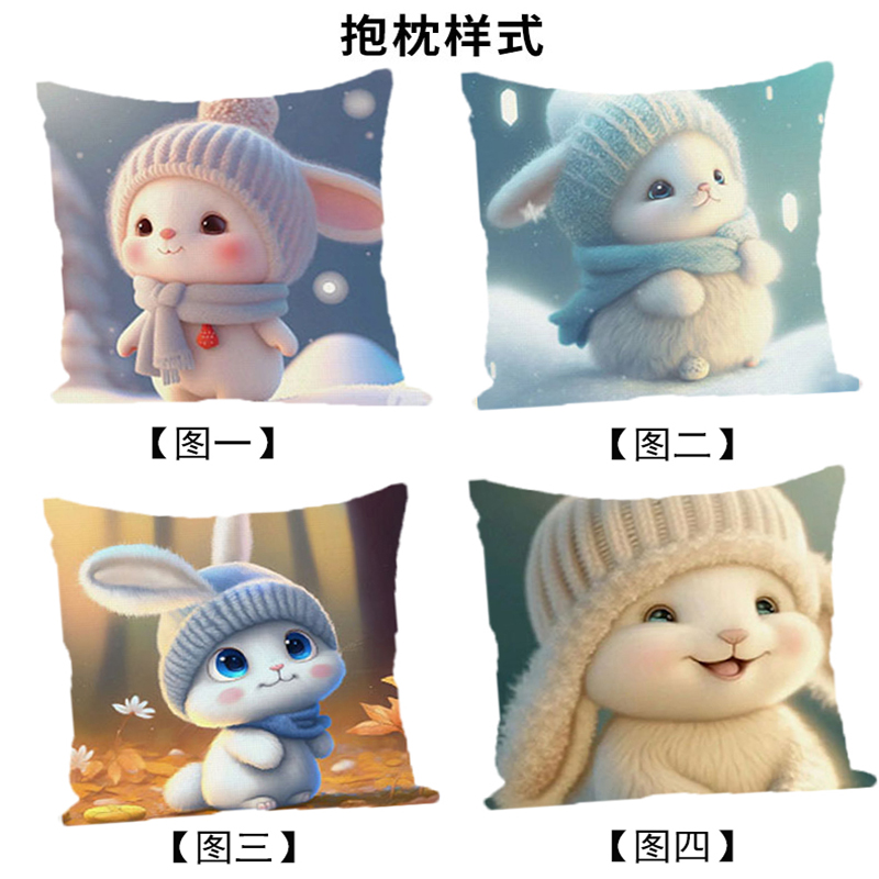 高颜值十字绣2023新款线绣小兔子抱枕一对卧室手工自己绣车用靠枕