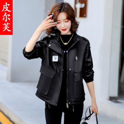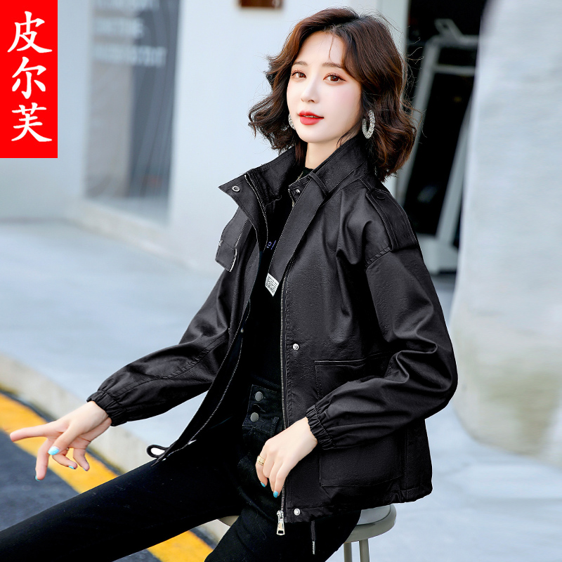 小个子黑色皮衣女士2021春秋季新款休闲机车服皮夹克时尚pu短外套