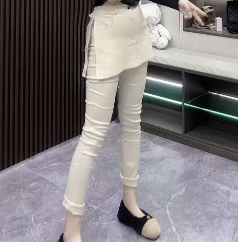 黑色显瘦高弹力铅笔裤小脚裤加绒四面弹拉链半身裙拼接长裤裤裙女