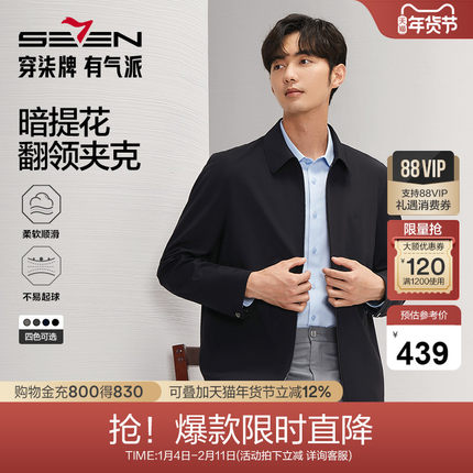 柒牌翻领夹克男2025秋冬新款暗格纹提花商务休闲行政通勤男士外套