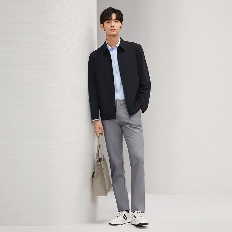 柒牌翻领秋冬暗格纹商务休闲
