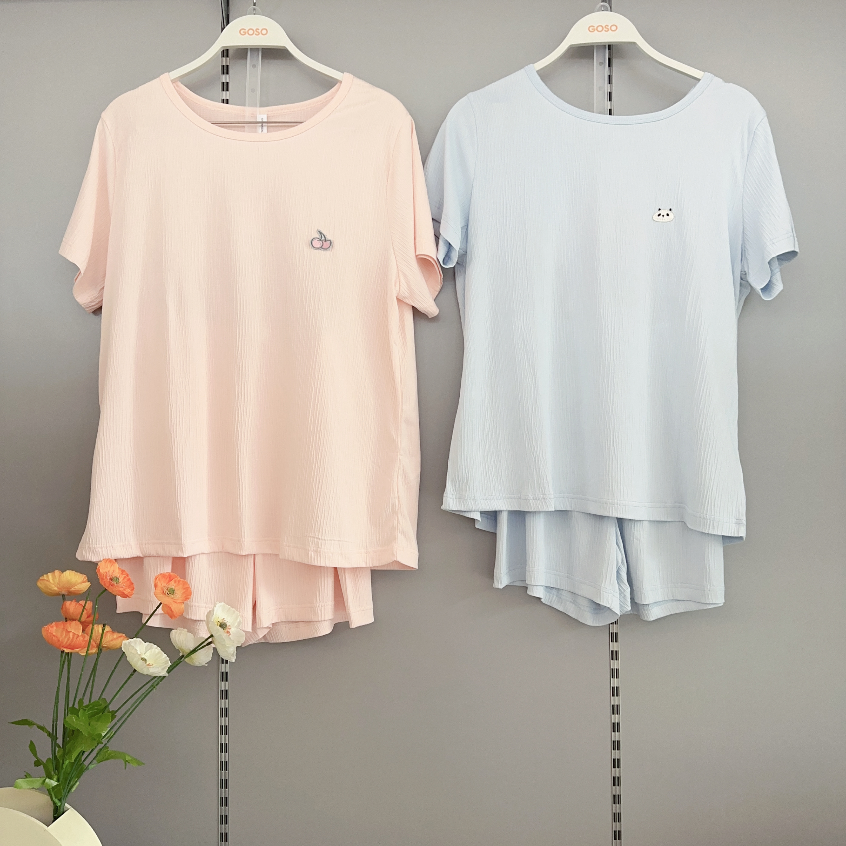香蜜闺秀25203003女士睡衣夏季薄款针织牛奶丝短袖短裤家居服套装