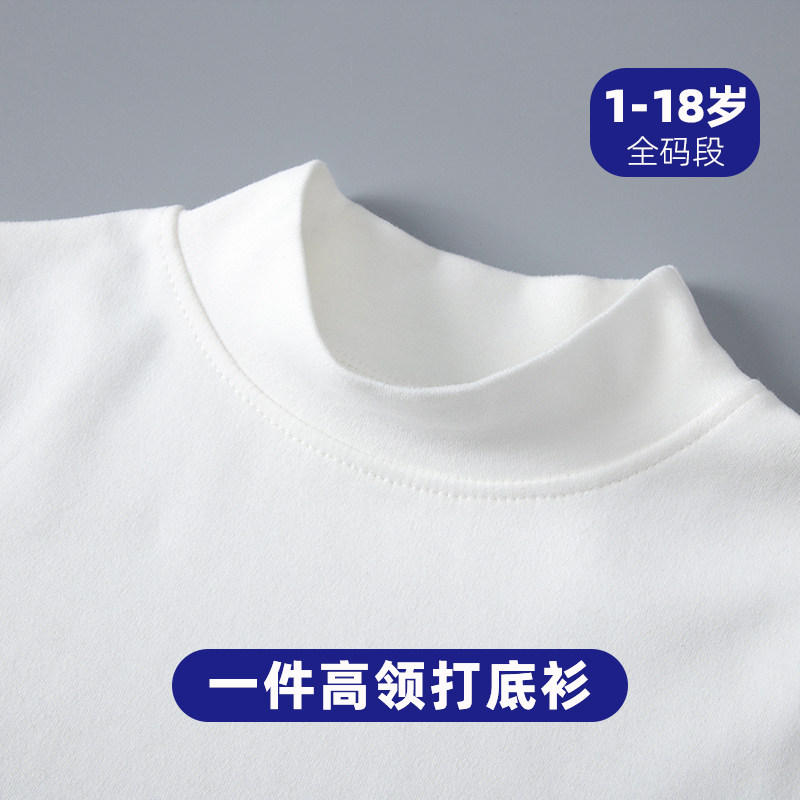 儿童中高领内衣单件秋衣打底男女纯色学生保暖高弹力纯棉T恤长袖