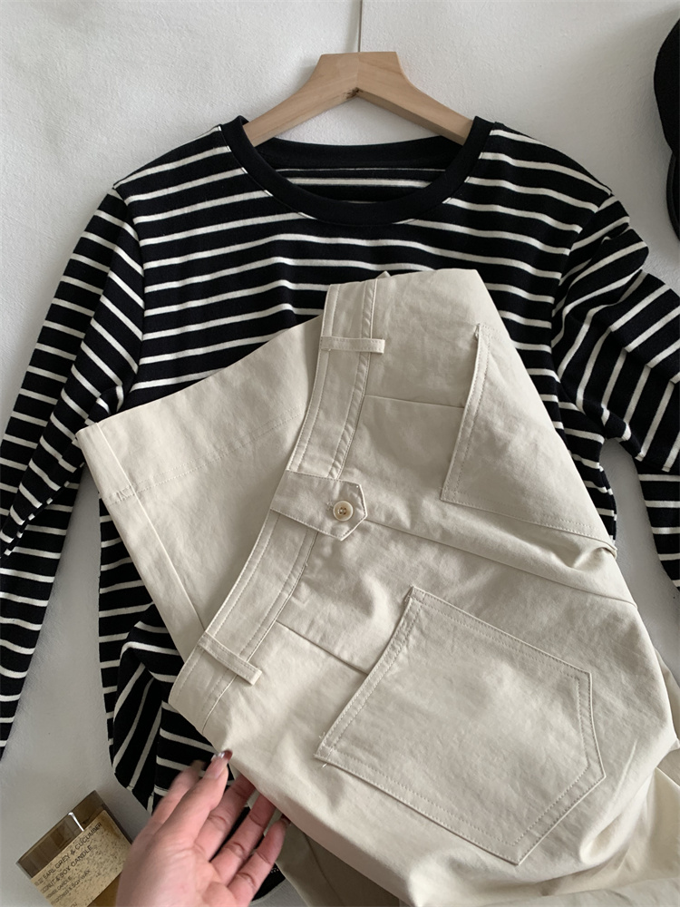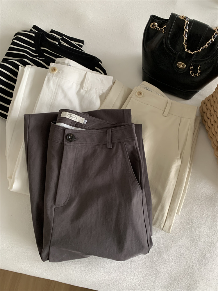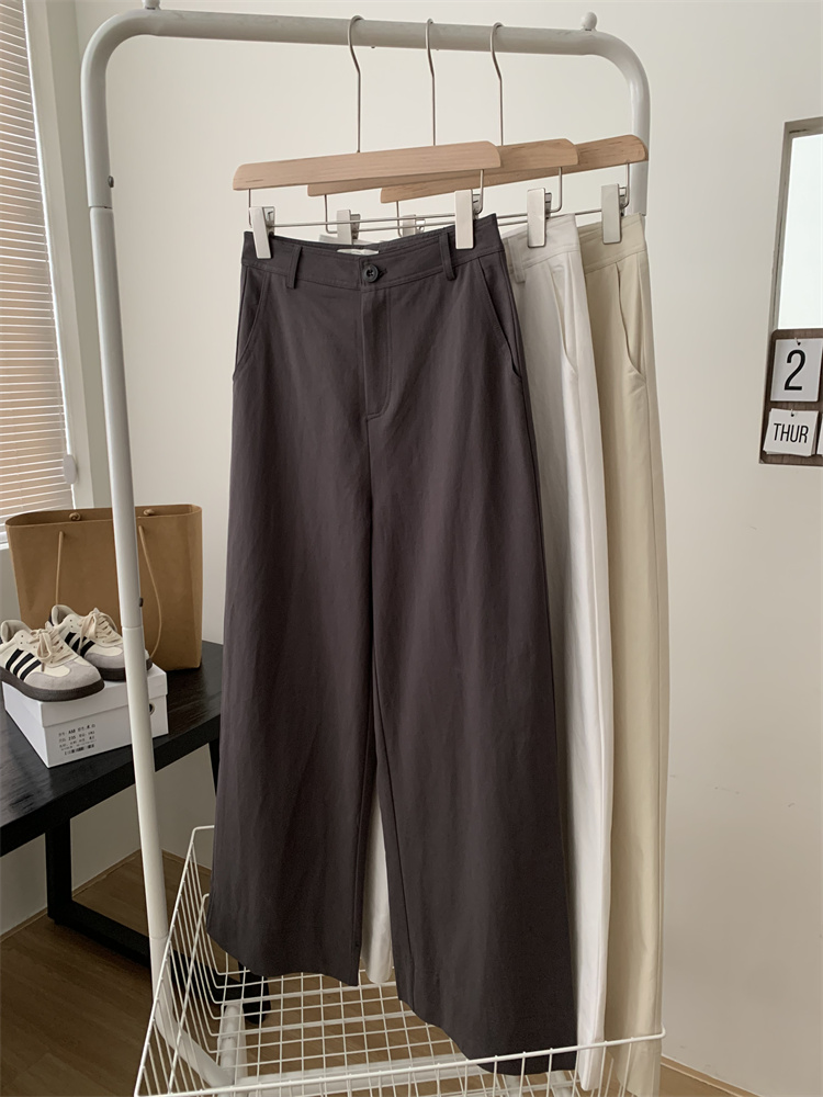 知性通勤风设计感高腰直筒裤女复古水洗棉显瘦百搭阔腿休闲裤春夏