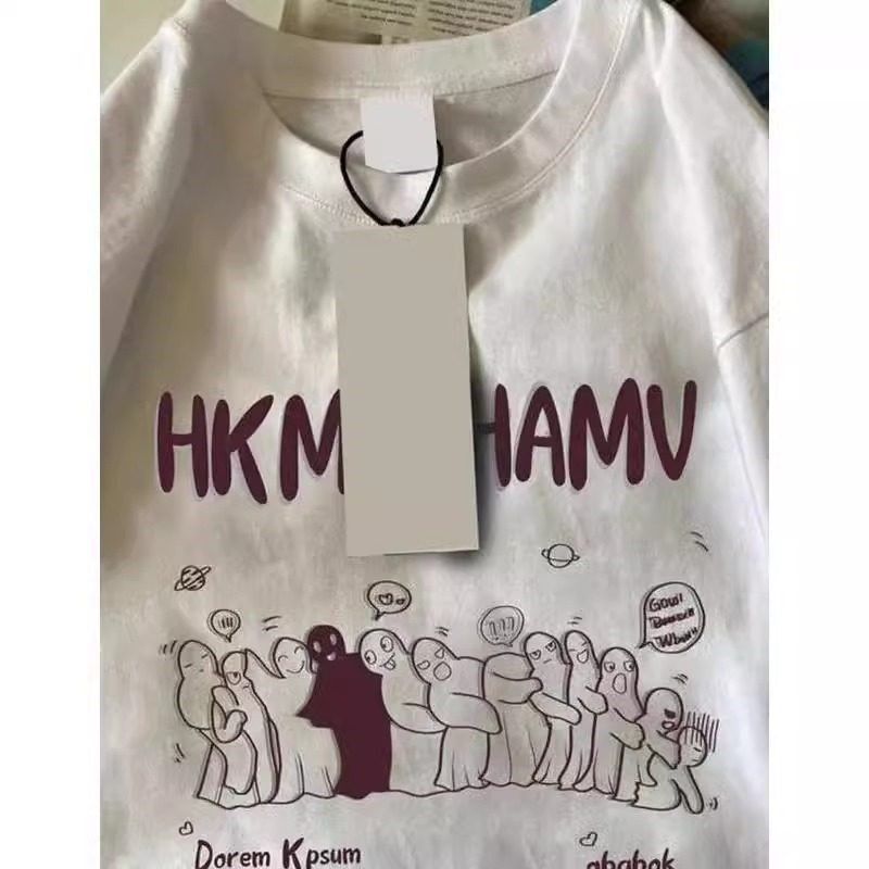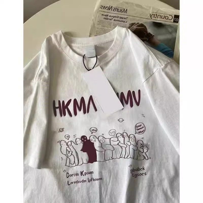 300斤大码男装夏日多巴胺穿搭纯棉白色短袖T恤男女夏季宽松半截袖