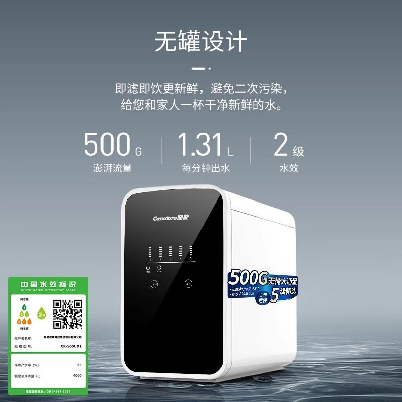 开能奔泰净水器前置过滤家用直饮500G无桶大流量RO反渗透膜纯水机