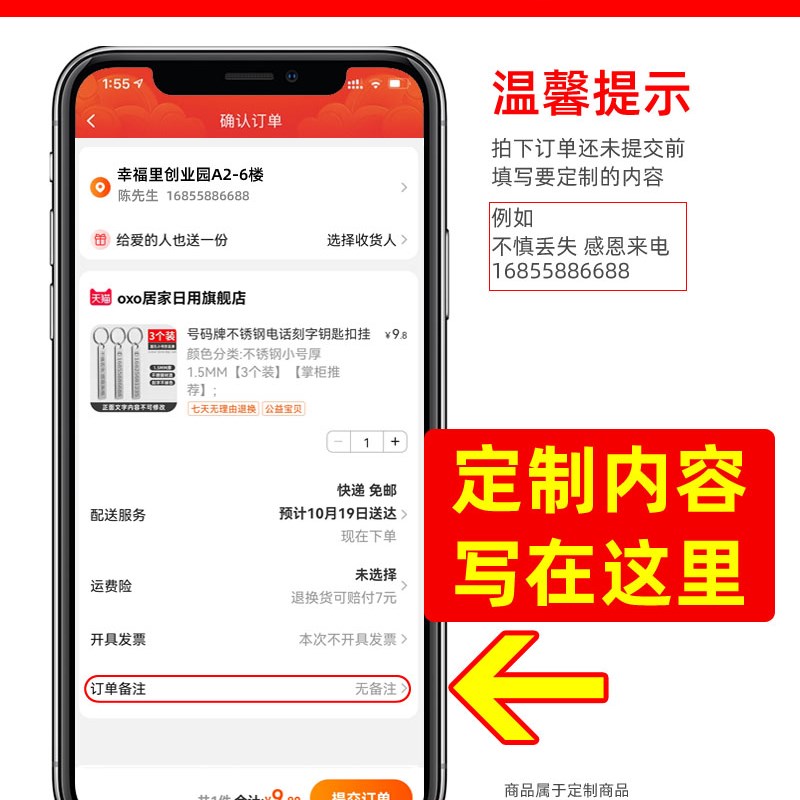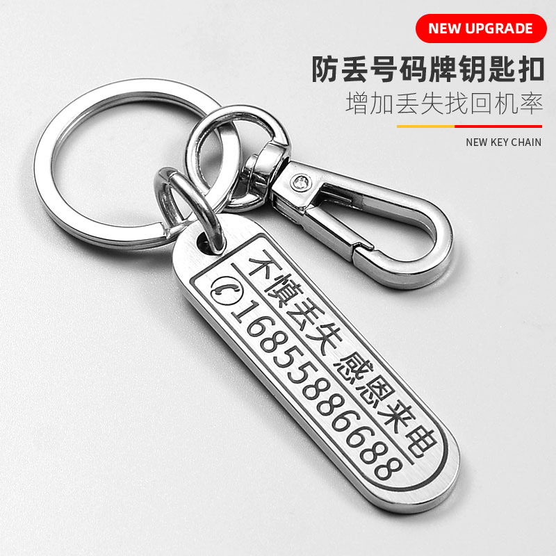 钥匙扣不锈钢防丢号码牌电话手机男士女尺子圈环链汽车挂件定制