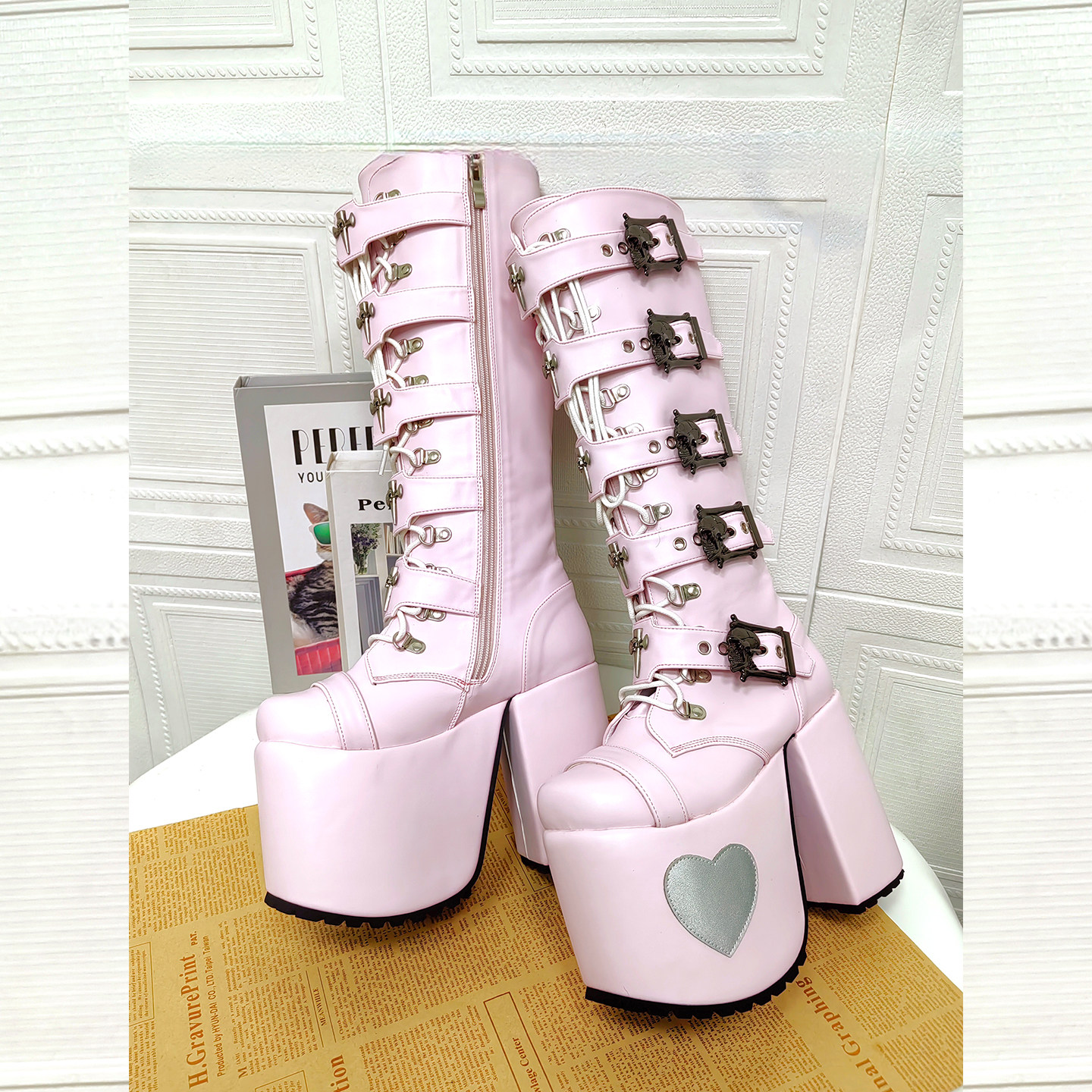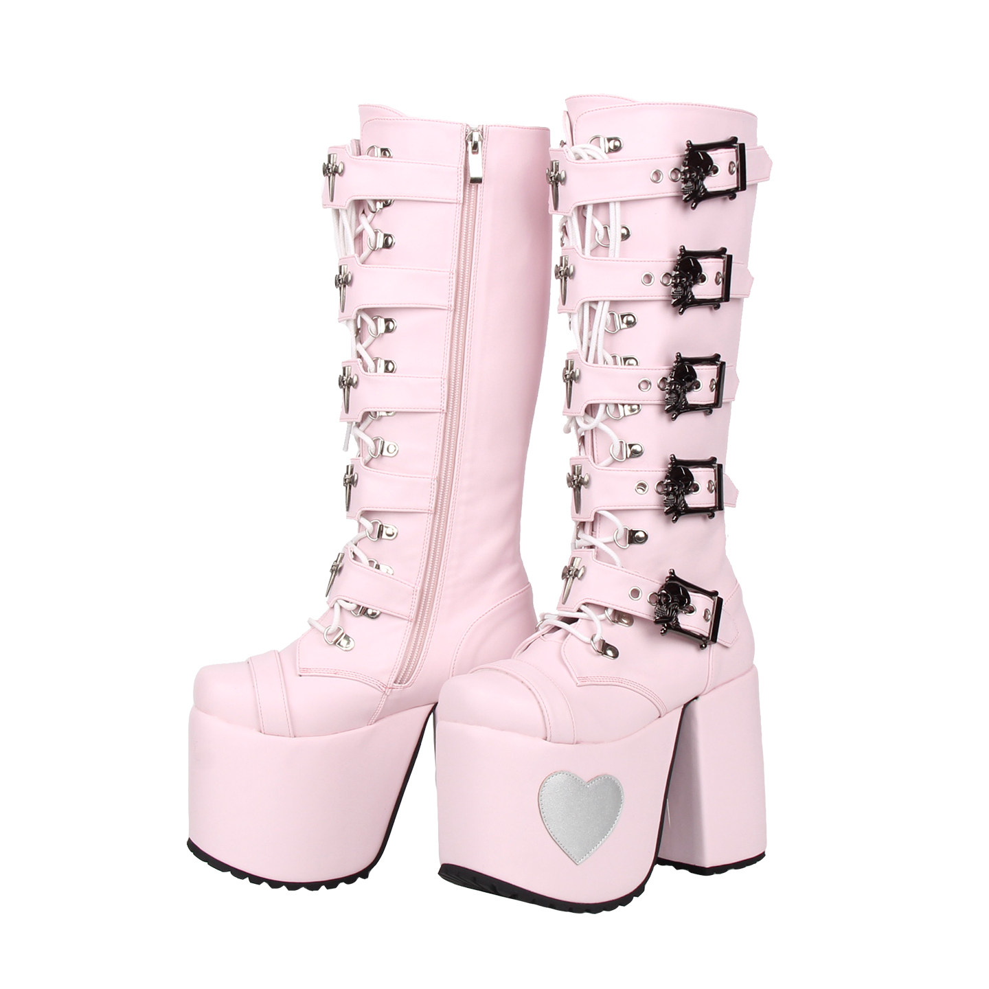 2025新品朋克PUNK靴 圆头十字架装饰 松糕粗跟拉链高筒靴M533