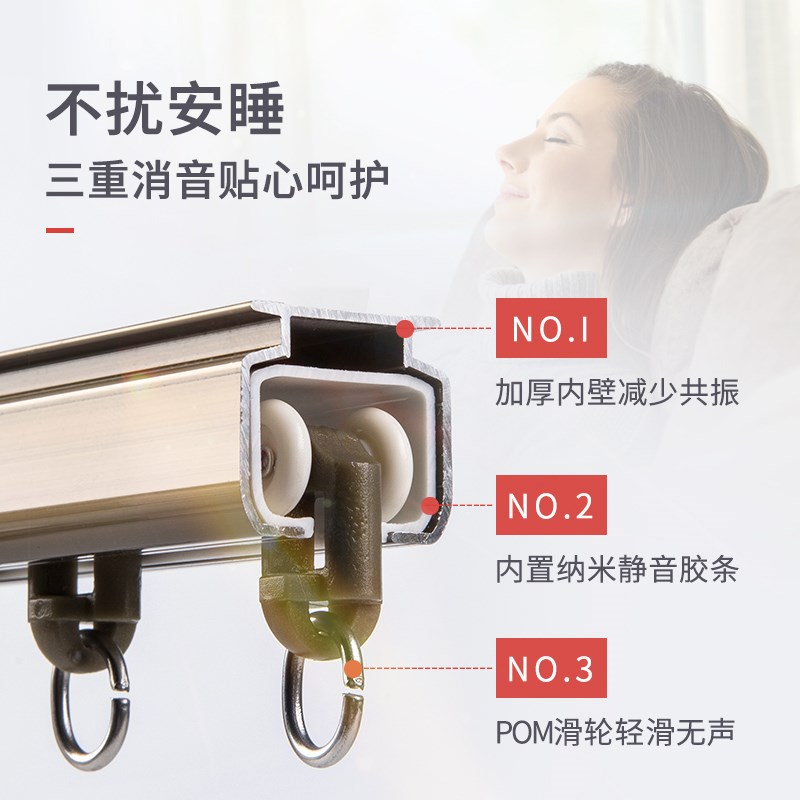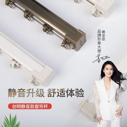创明窗帘轨道顶装墙装静音铝合金窗帘导轨双轨单轨道侧装窗帘杆子