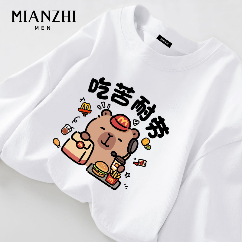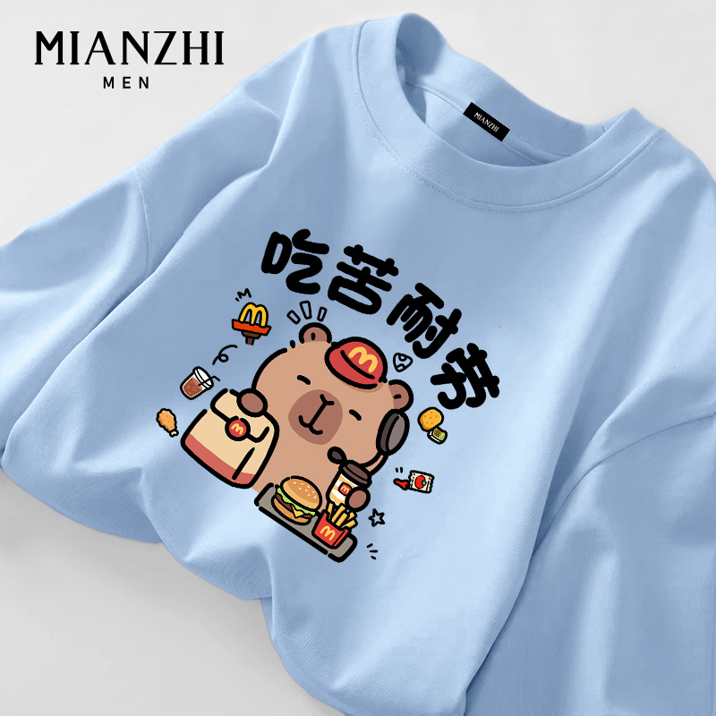 棉致吃苦耐劳卡皮巴拉纯棉长袖男款t恤秋季宽松初高中生新款上衣