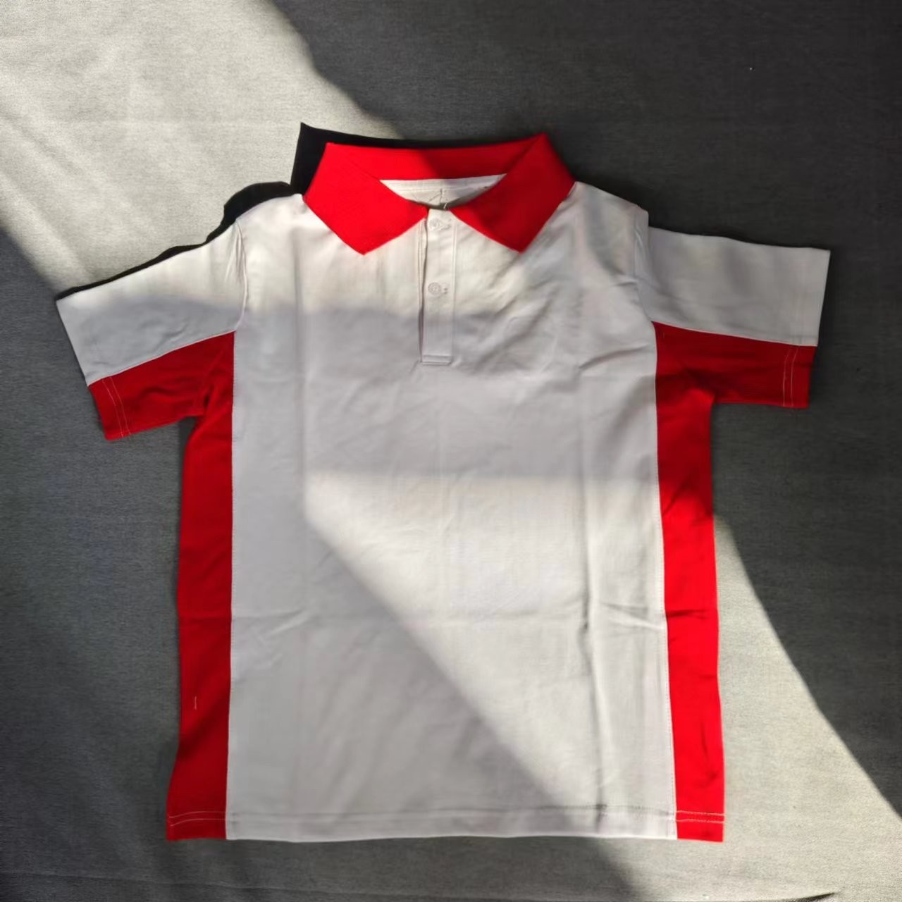 定做夏季男女同款网眼棉纯棉休闲上衣短袖 大红色拼接白色上衣T恤