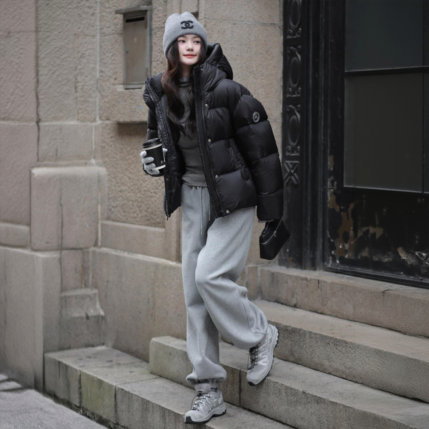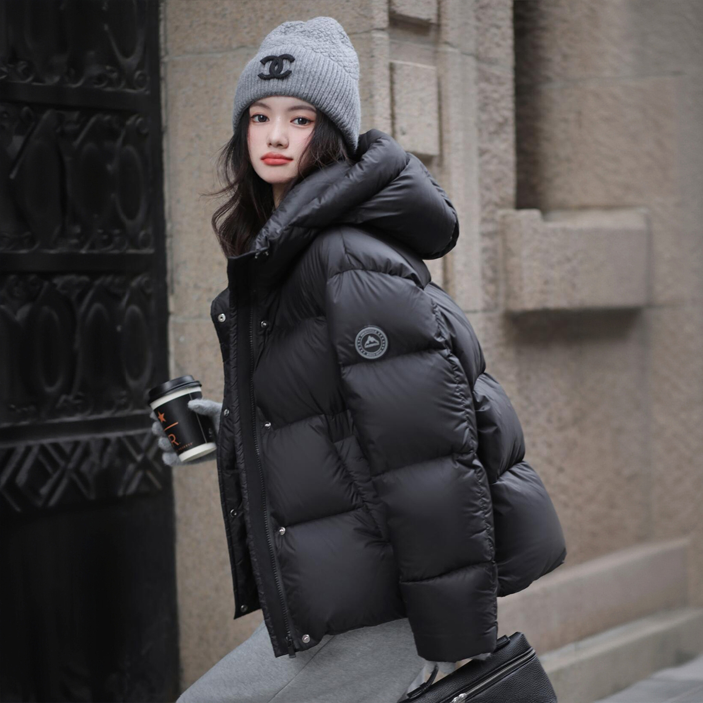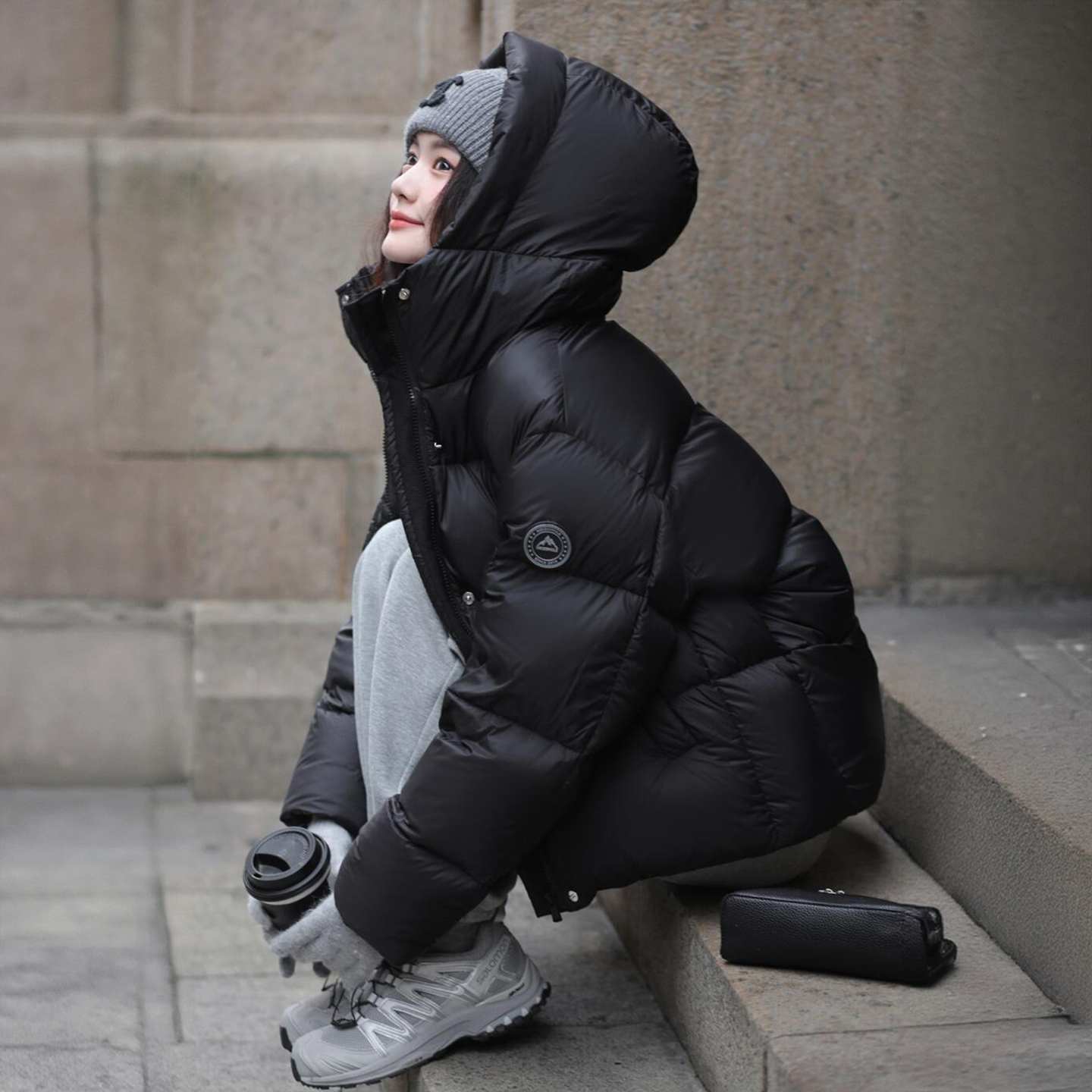 300斤特大码黑色简约高级感棉服上衣女胖mm加厚保暖连帽夹棉外套
