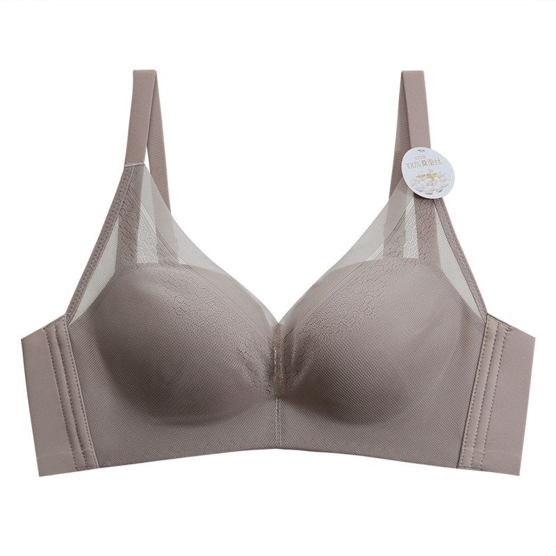 100%桑蚕丝内里无痕内衣女小胸聚拢收副乳防下垂无钢圈舒适文胸罩