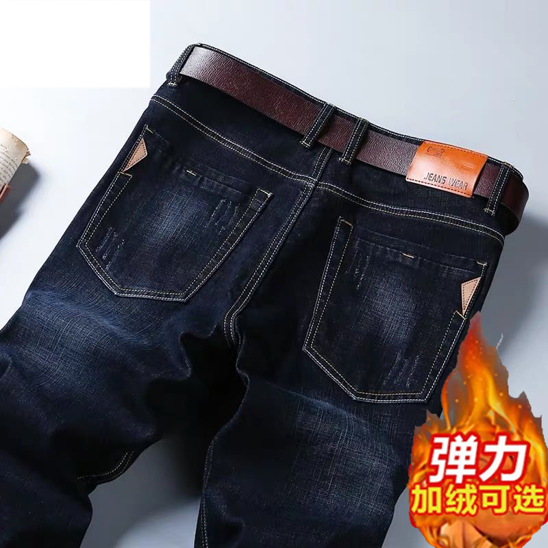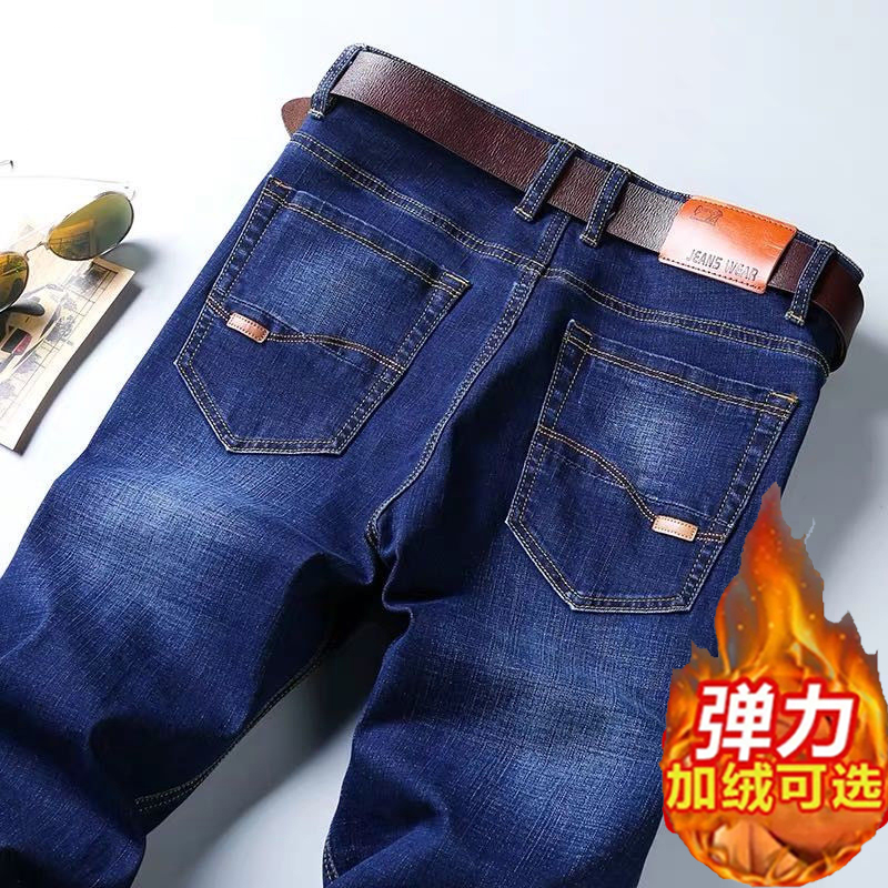 秋冬厚款弹力牛仔裤男透气凉快宽松直筒大码休闲男装长裤青年高腰