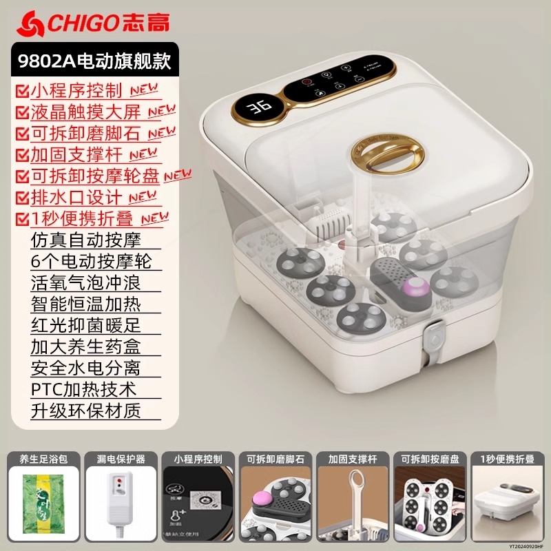 志高可折叠泡脚桶电动足浴盆恒温神器家用加热全自动洗脚足疗按摩