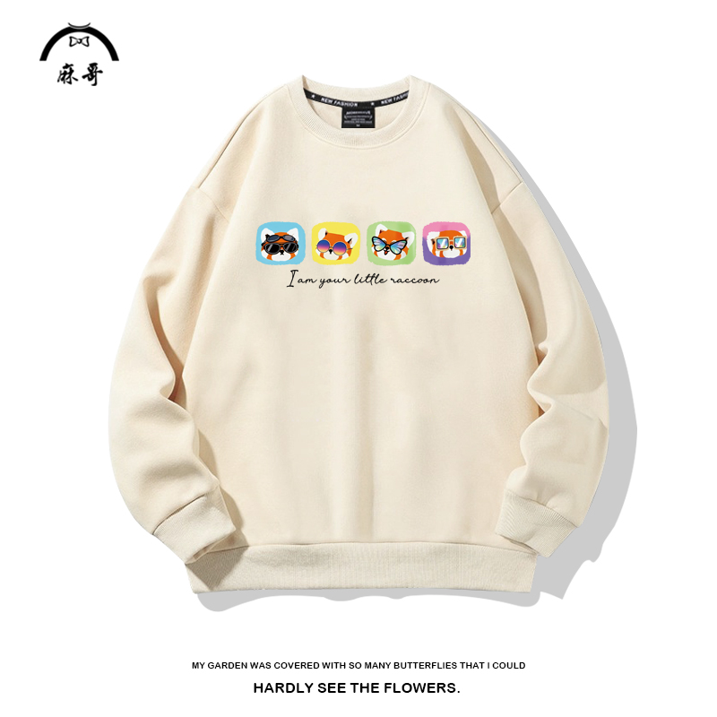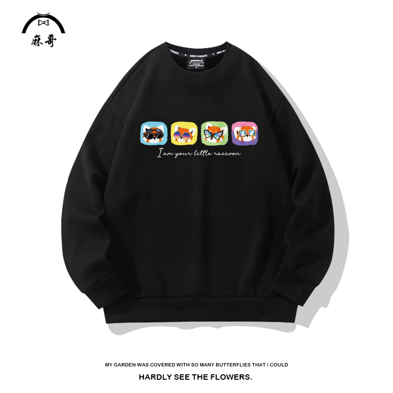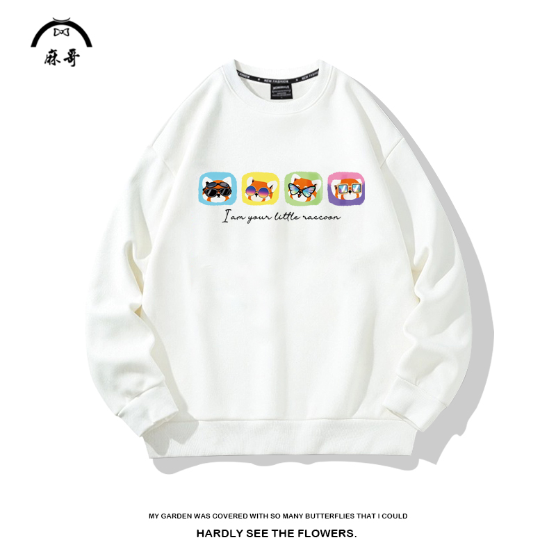 2025新款圆领卫衣男小浣熊印花外套大码加肥长袖T恤休闲套头上衣