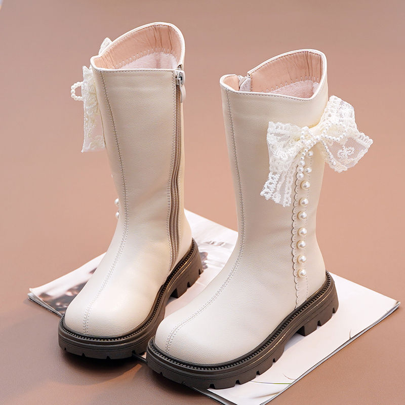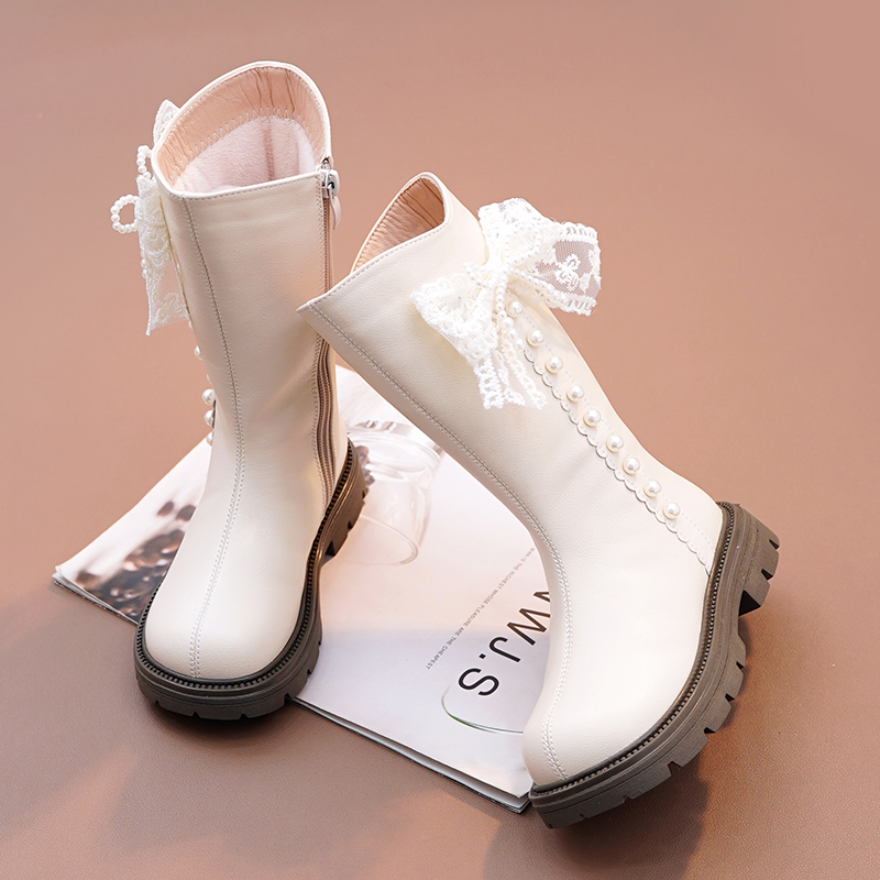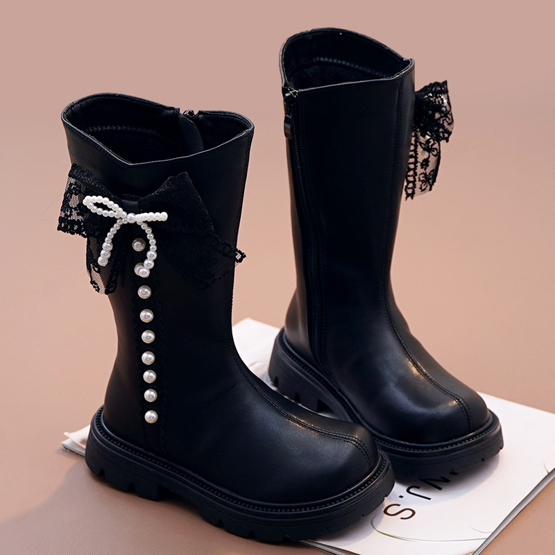 女童马丁靴高筒靴二棉公主靴中大童真皮软底加绒棉靴2025秋冬新款
