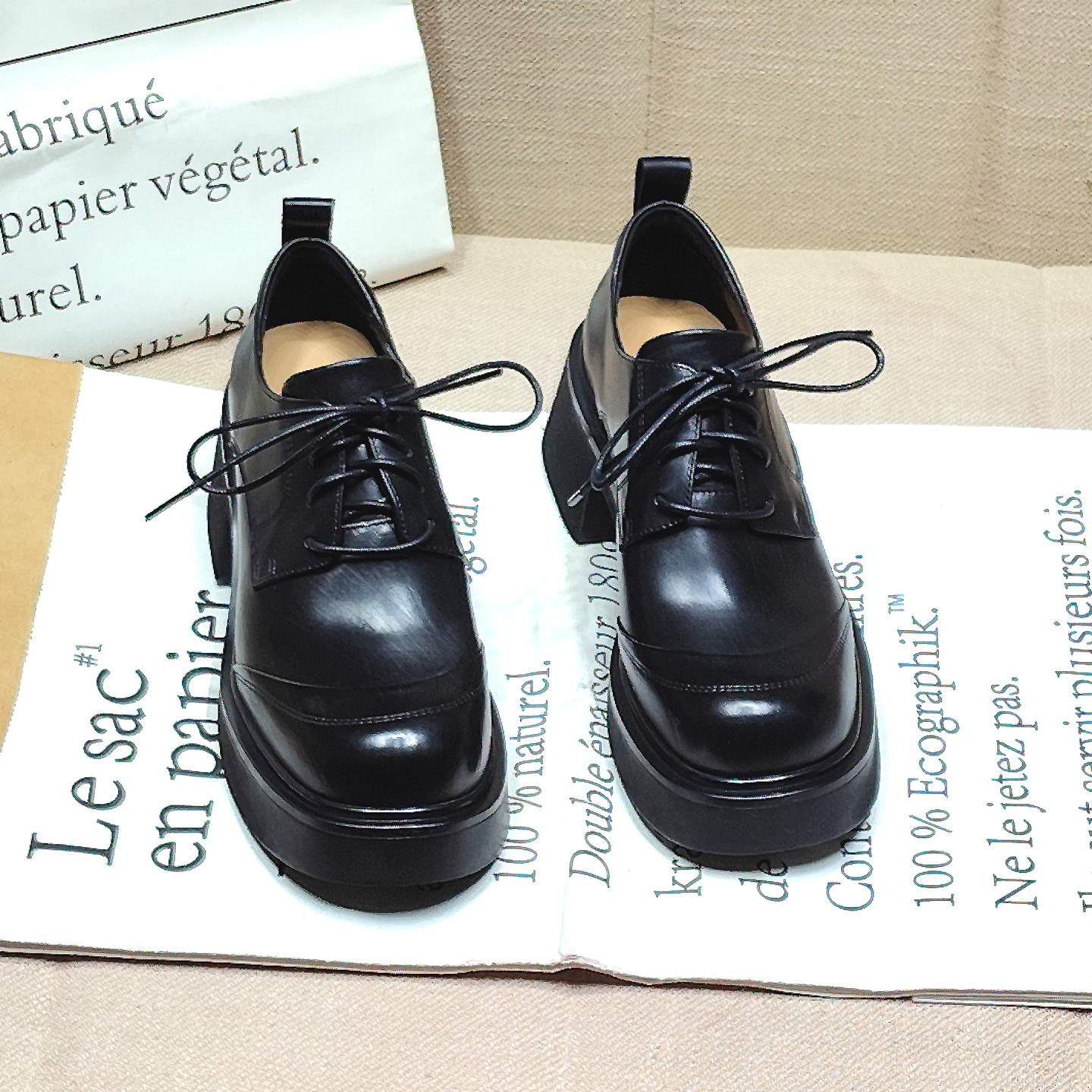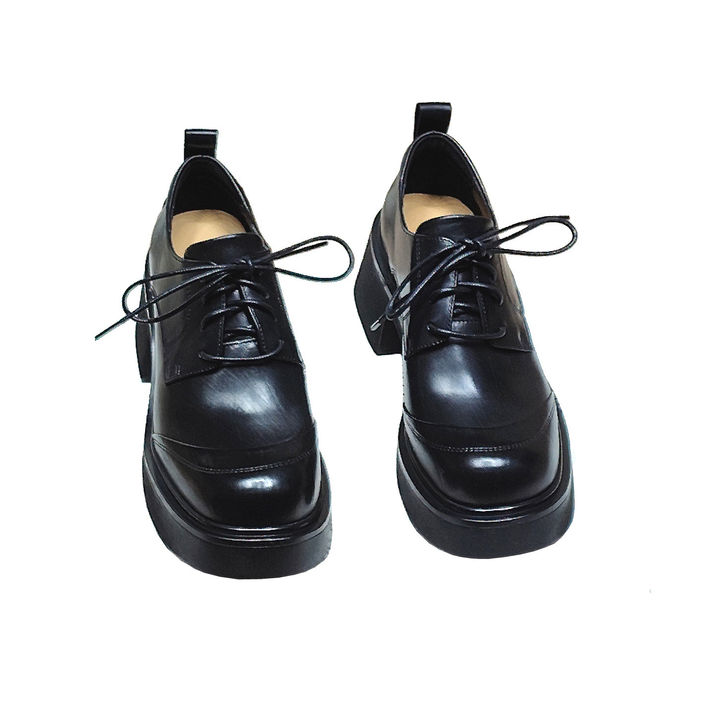 2026新款高跟单鞋女真皮英伦粗跟小皮鞋女厚底深口女乐福鞋单鞋