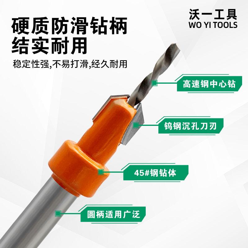 沃一六角柄限位沉头锥孔钻中心钻开孔倒角自攻螺丝安装木工开孔器