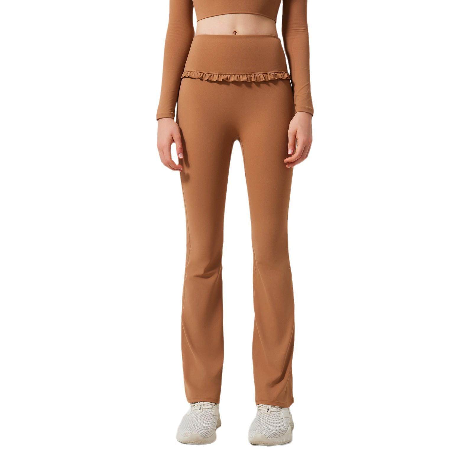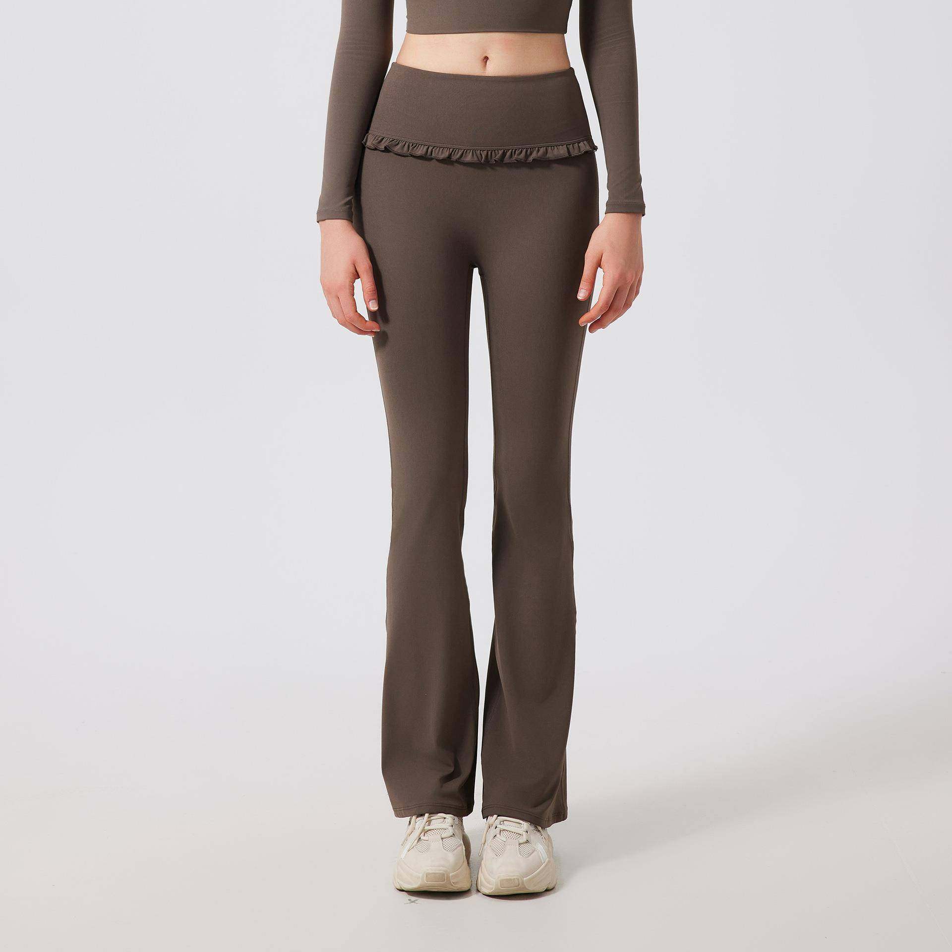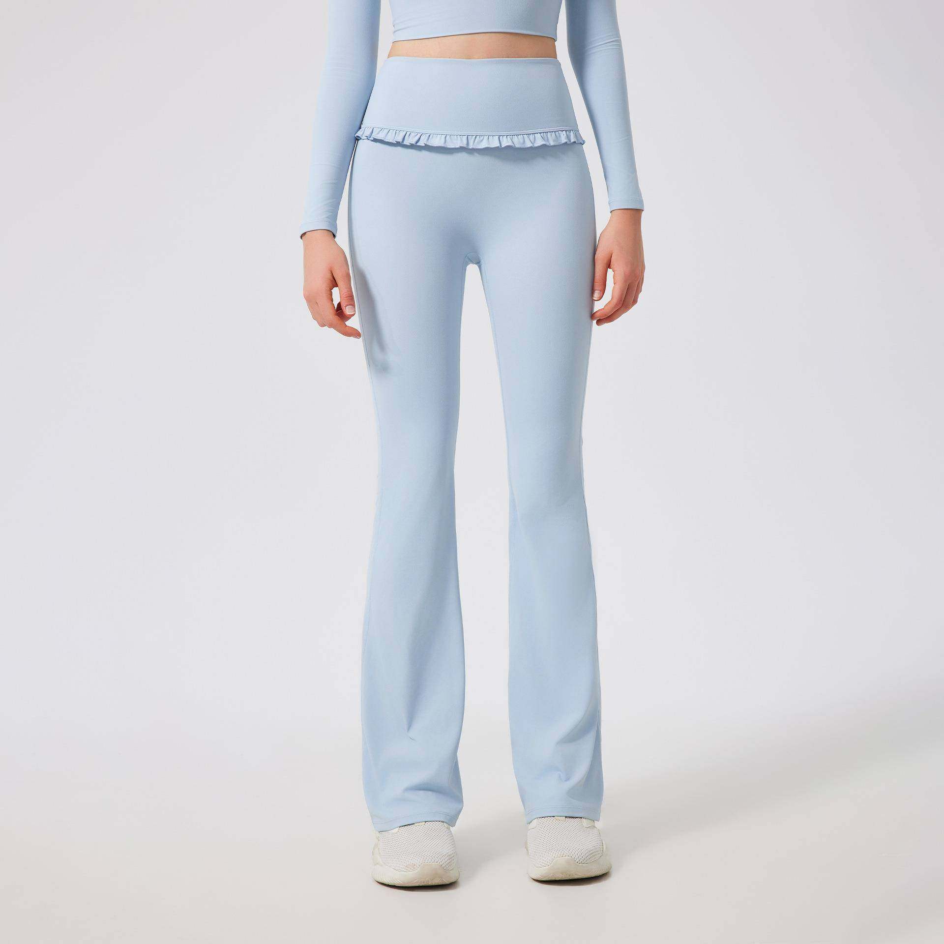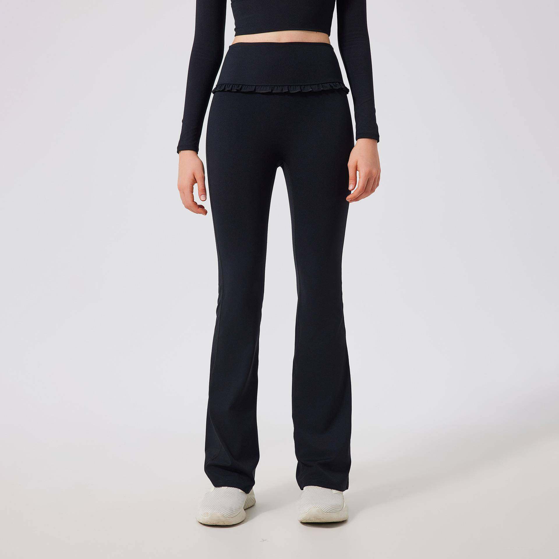 梵心荷叶边微喇瑜伽裤女高腰显瘦运动喇叭裤修身透气休闲健身长裤